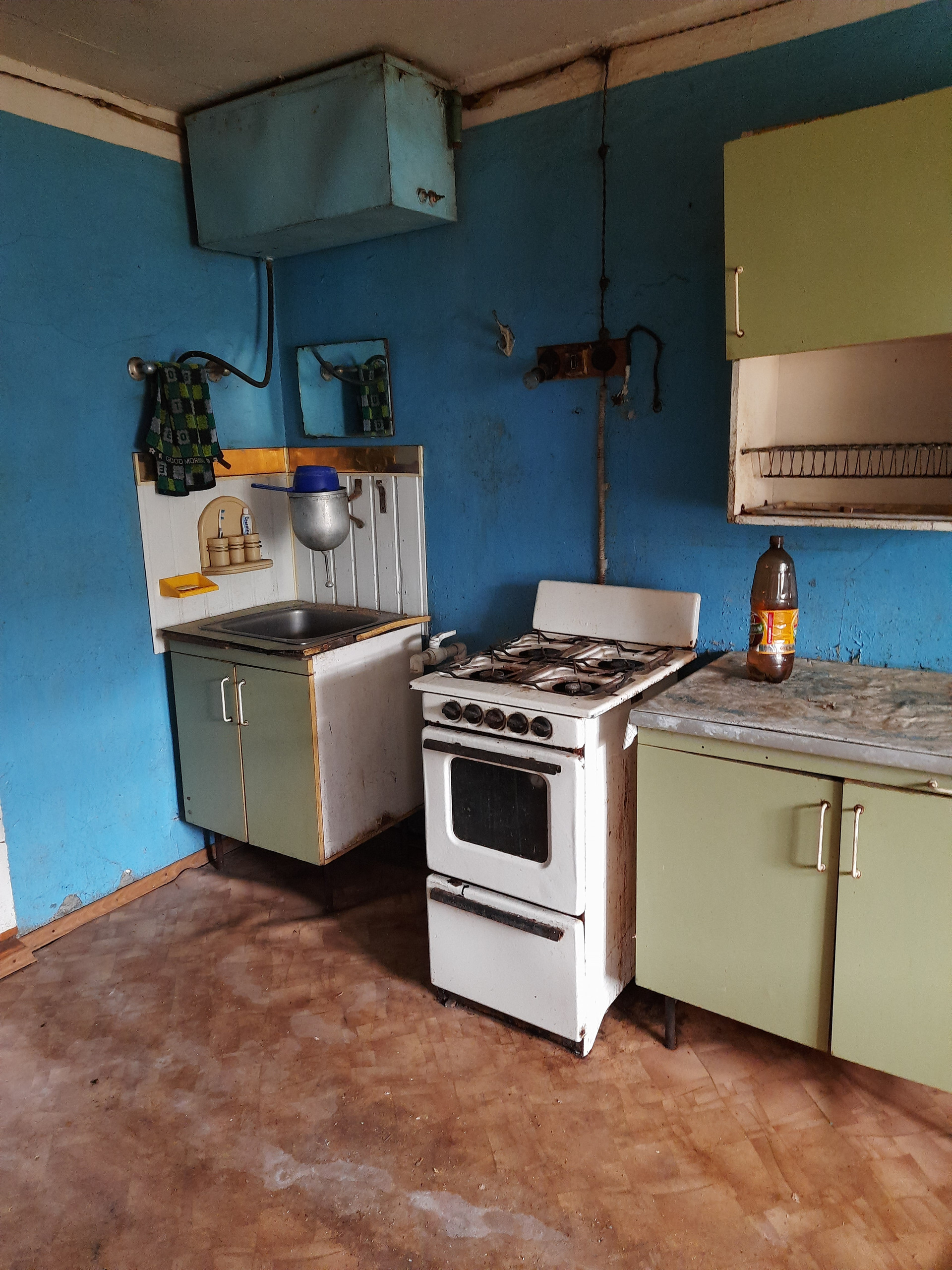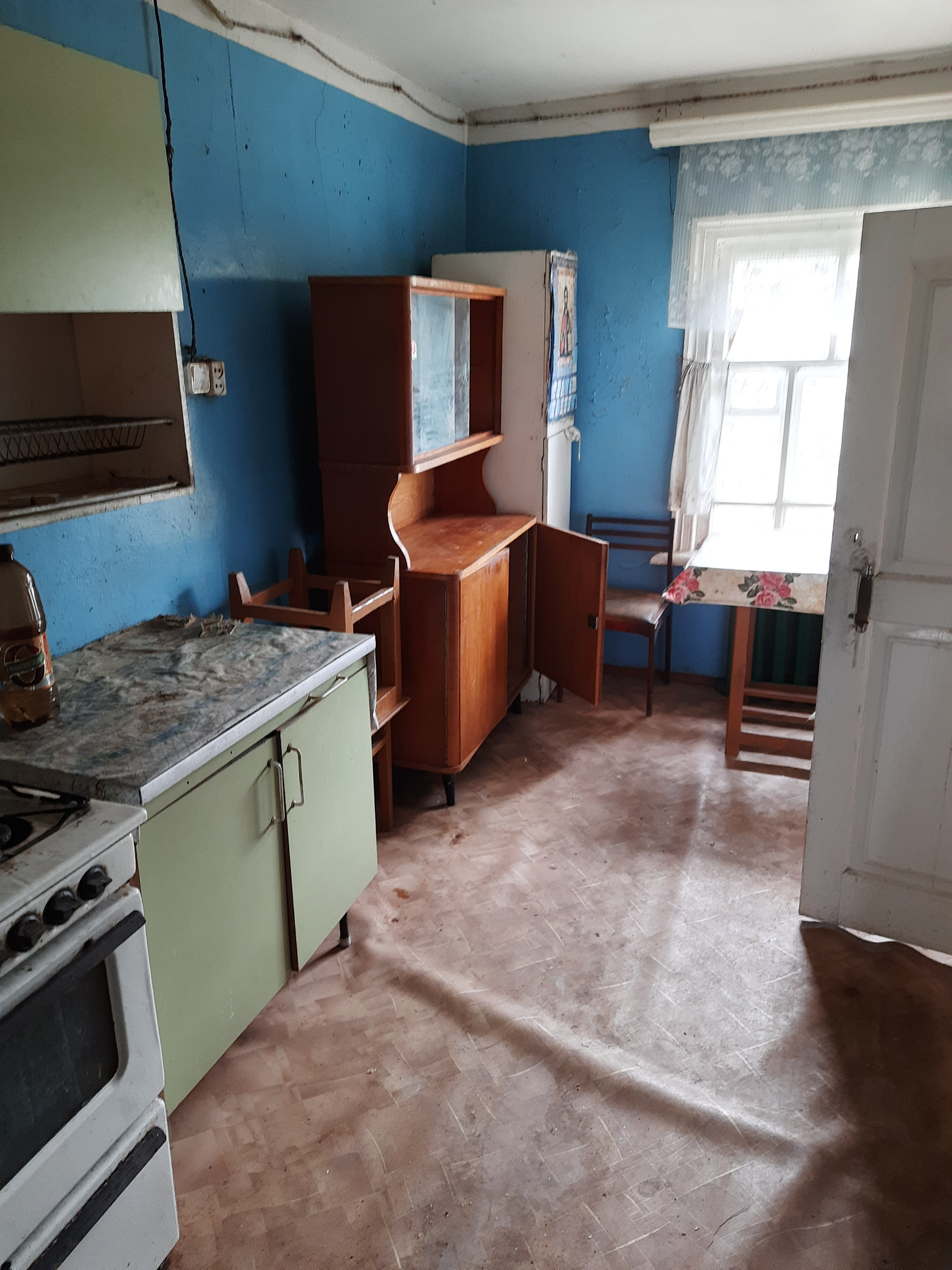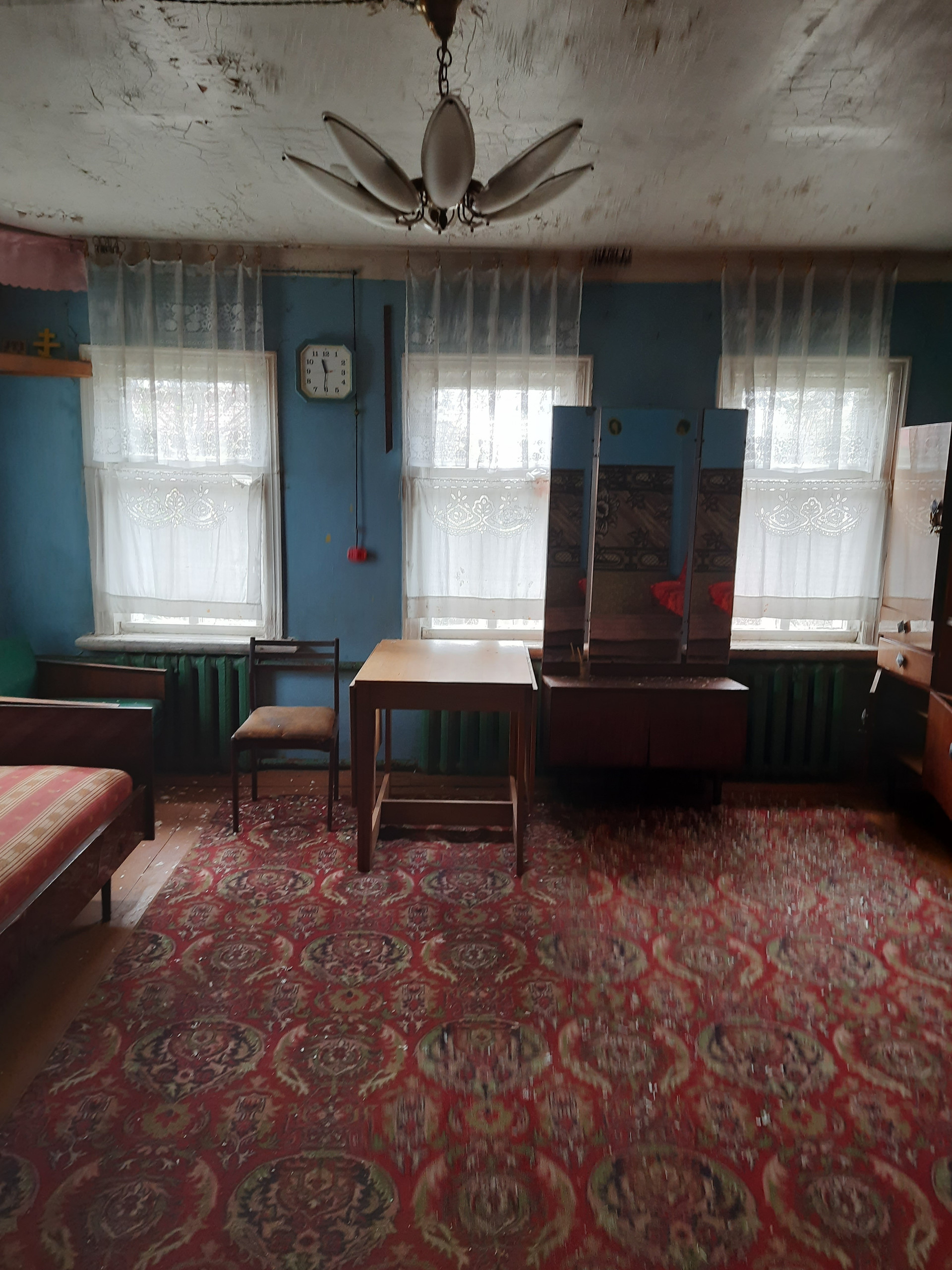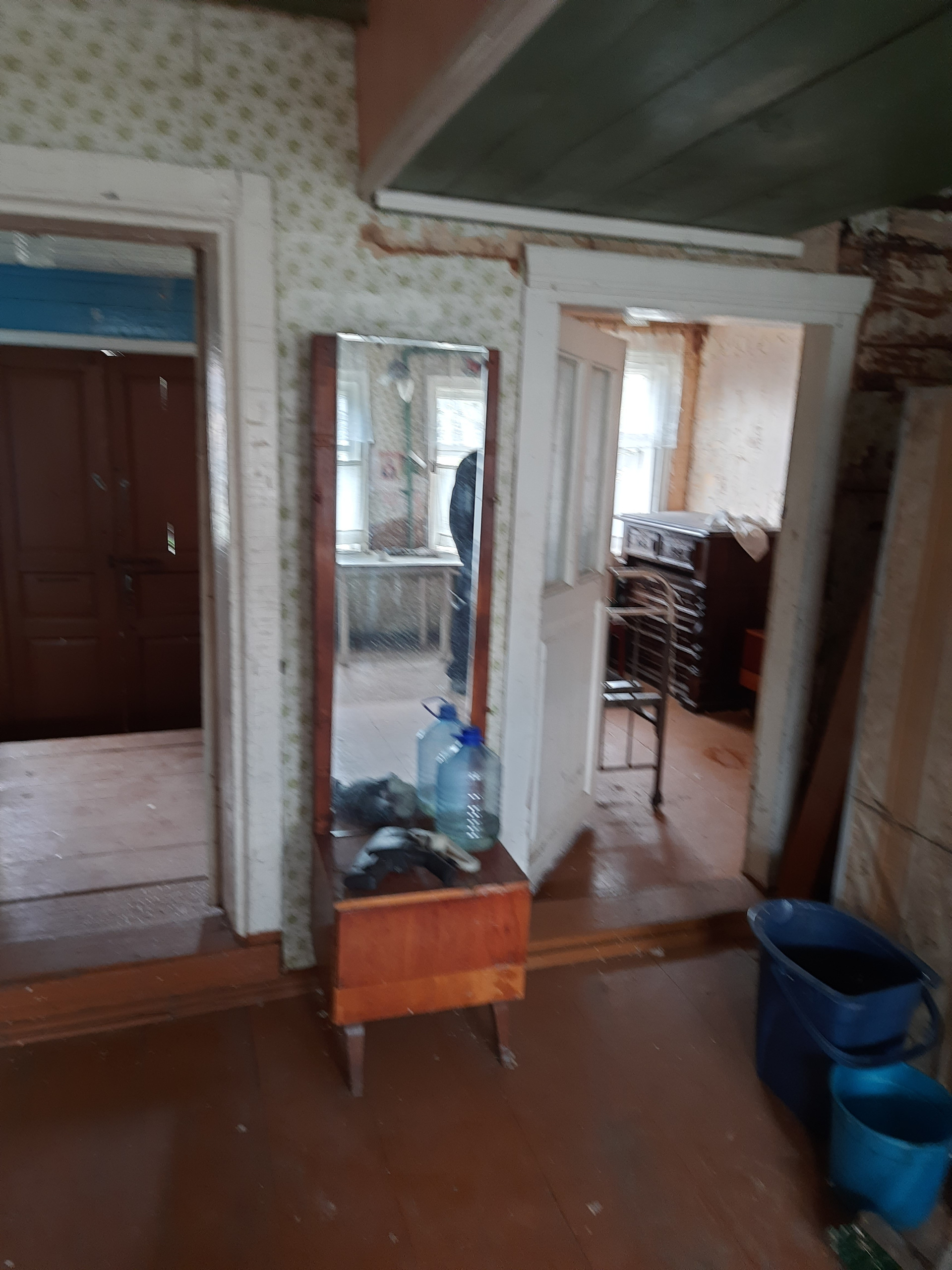 дом бревенчатый  на кирпичном фундаменте,крыша железная. В доме 2 спальни + кухня гостиная, большая веранда, коридор. Вода от личного колодца заведена в дом. Отопление  печное ( котельная в подвале). в доме поставлены чугунные батареи. На участке (в собственности) баня, сарай , хоздвор.