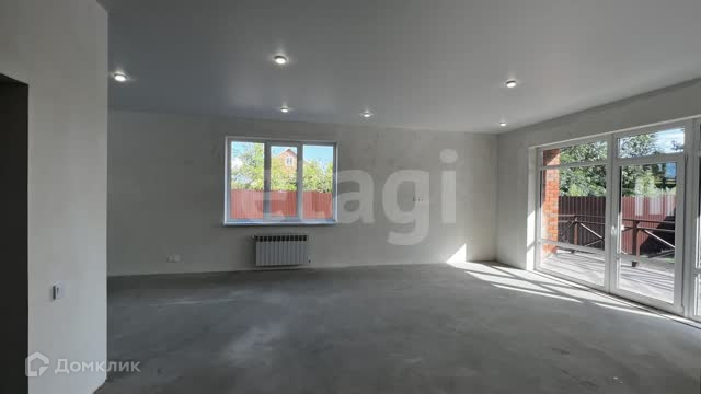 Внутри дома предчистовая отделка: выполнена сухая стяжка пола, на нее можно класть любое покрытие уже, проштукатурены стены и готовы к покрытиям, натяжные потолки, выполнена электро и инженерная разводка по дому с учетом расстановки основной мебели.