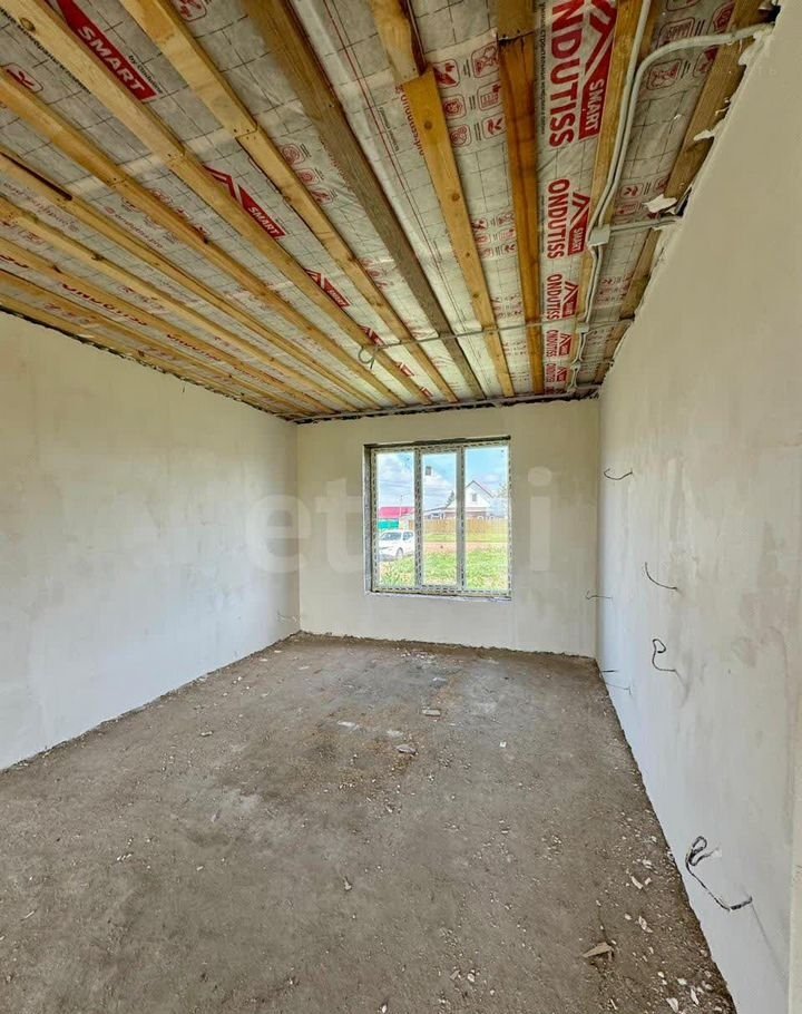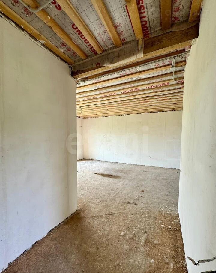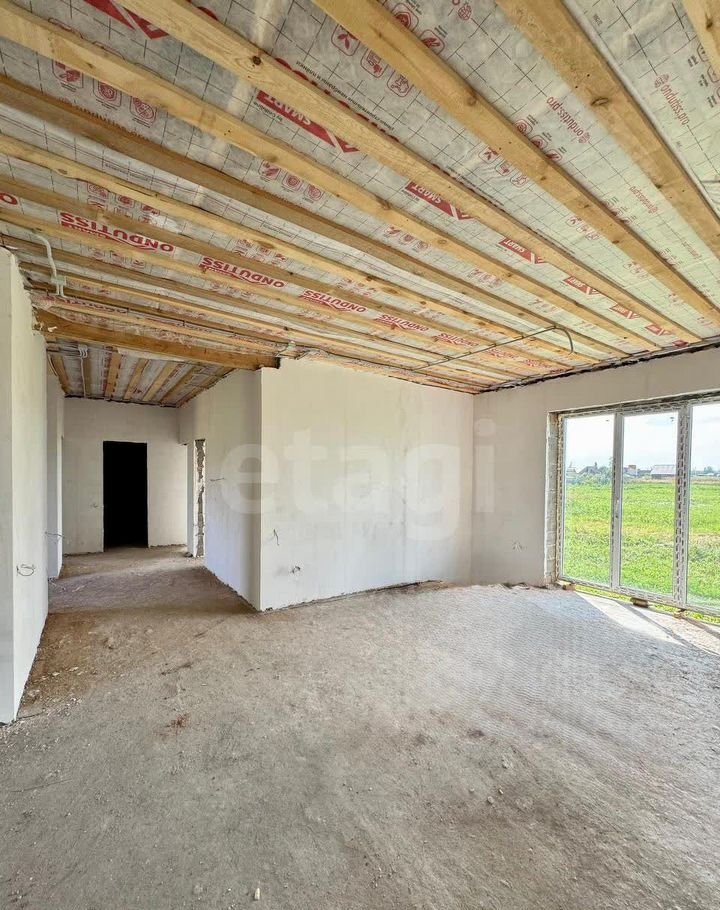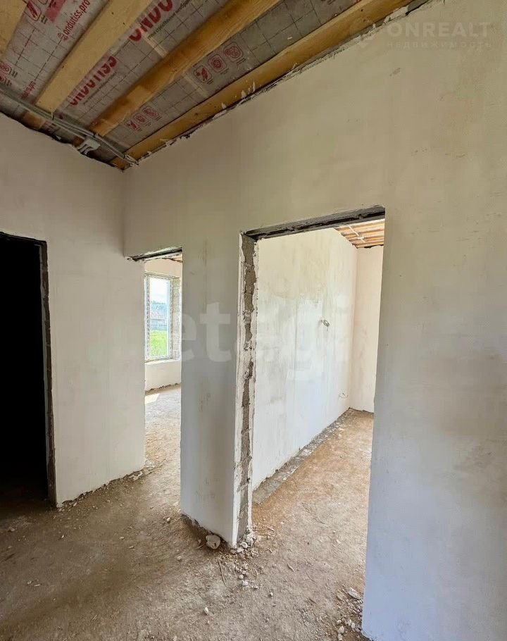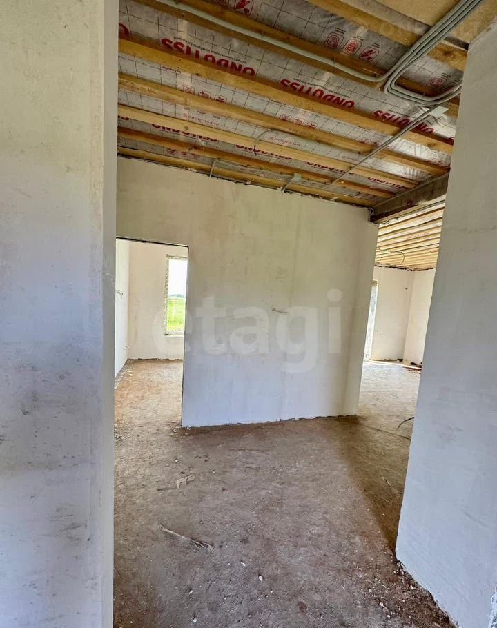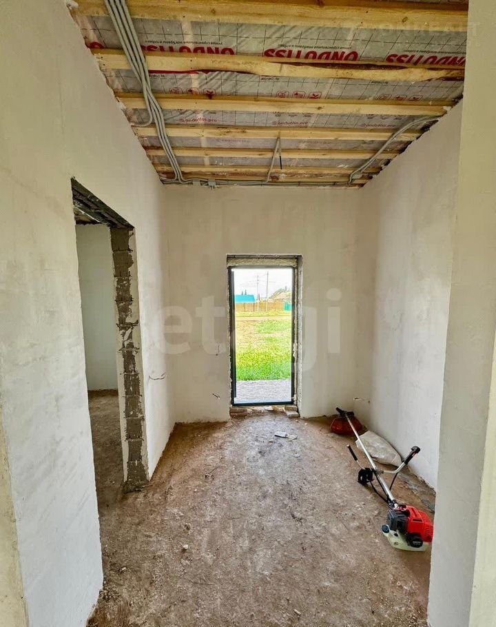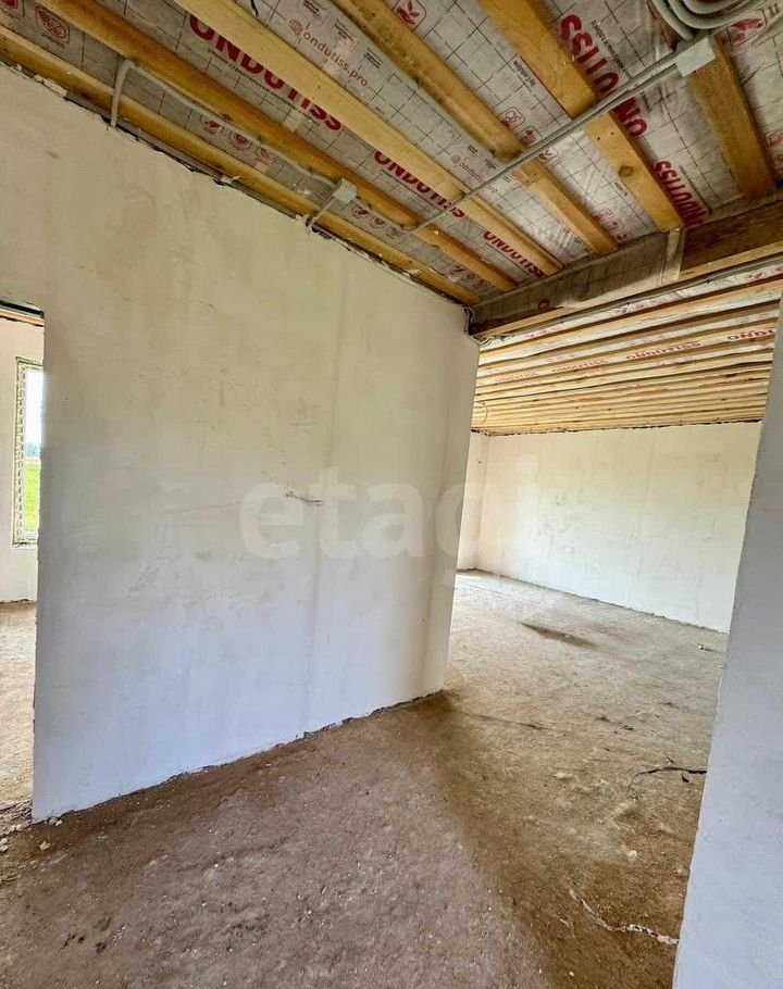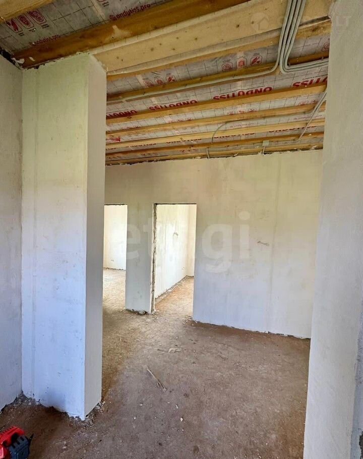 Здание построено из шлакоблока (40×30 см) с дополнительным утеплением и мокрым фасадом, что обеспечивает общую толщину стен 60 см и высокую энергоэффективность. Фундамент — ленточно-свайный, глубиной 2 м, гарантирующий устойчивость конструкции. Дом находится в состоянии полу-чистовой отделки: стены оштукатурены, разведена электрика. Это позволяет новым владельцам быстро завершить ремонт по своему вкусу.