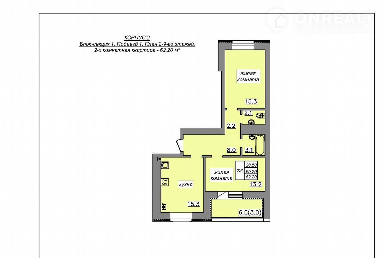 Общая площадь 62.2 м2