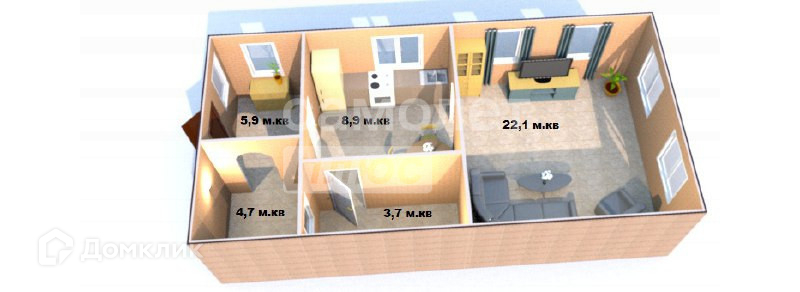 Общая площадь 34.7 м2