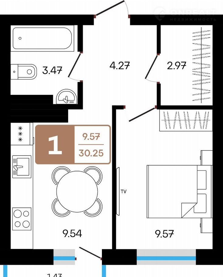 Общая площадь 30.3 м2
