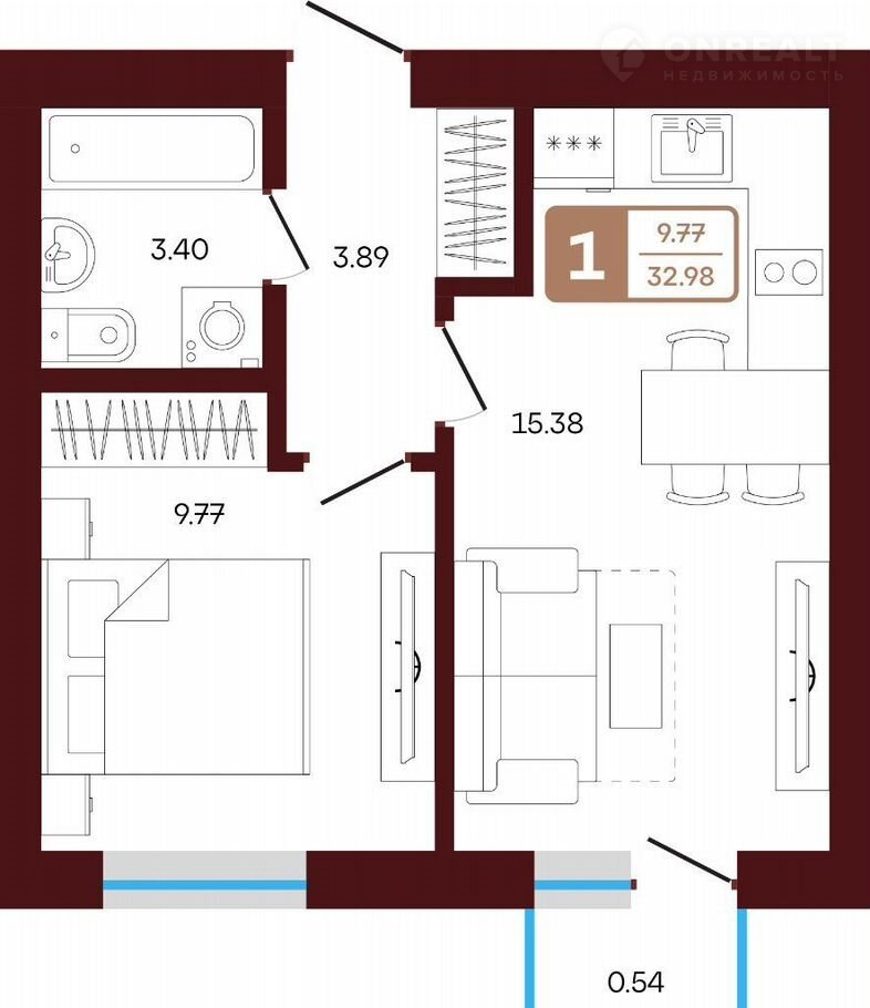 Общая площадь 33 м2