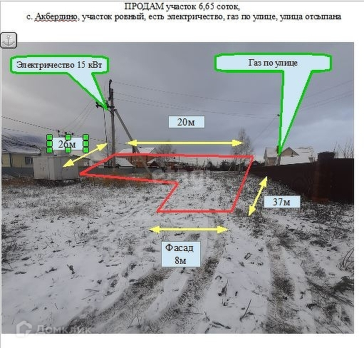 Газ проходит по улице, электричество - столб около участка.