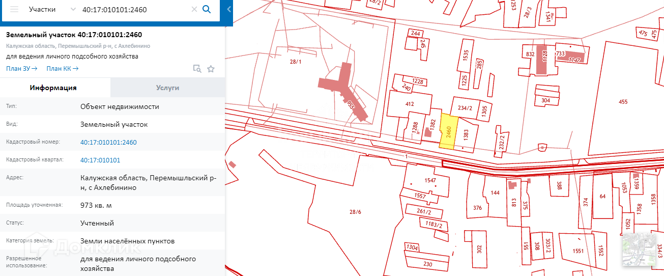 -кадастровый номер 40:17:010101:2460