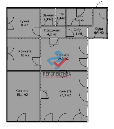 Жилая площадь 72.3 м2