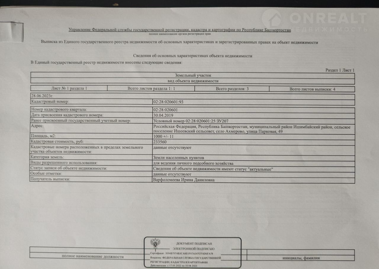 Срочно!!! Продам земельный участок в с. Ахмерово, ул. Парковая, д. 49. Участок ровный, прямоугольной формы, площадь 1000 кв. м. Один взрослый собственник. Кадастровый номер 02:28:020601:93
