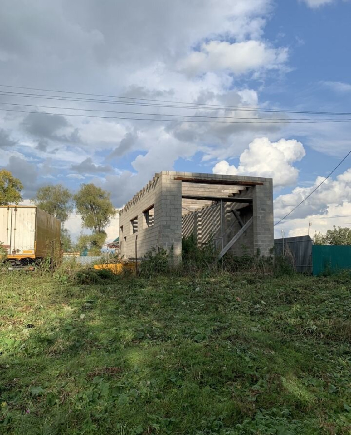 Недостроенный гараж размеры 6*14м высота стен 4,8м, строили под грузовую машину.