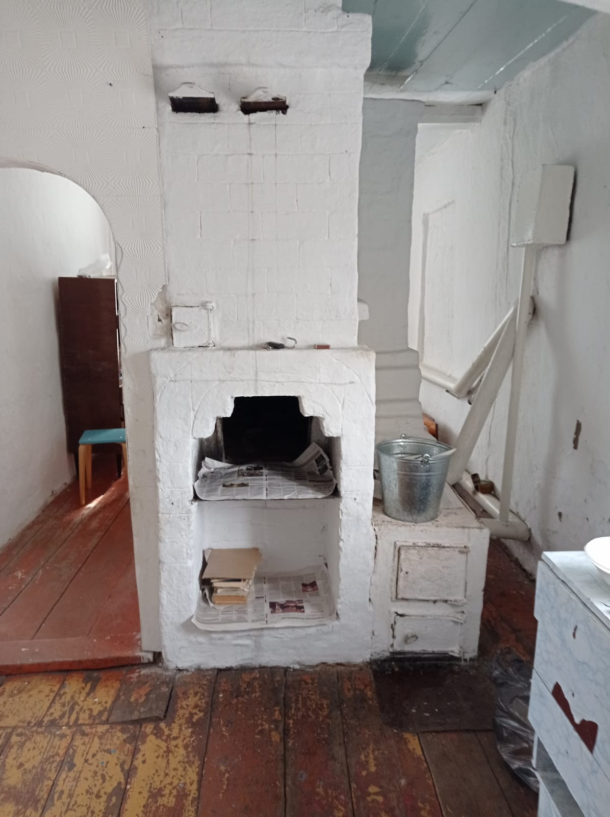 В доме имеется печь. Паровое отопление. Во дворе хоз постройки: каменный гараж, баня, сарай. Во дворе скважина с питьевой водой.