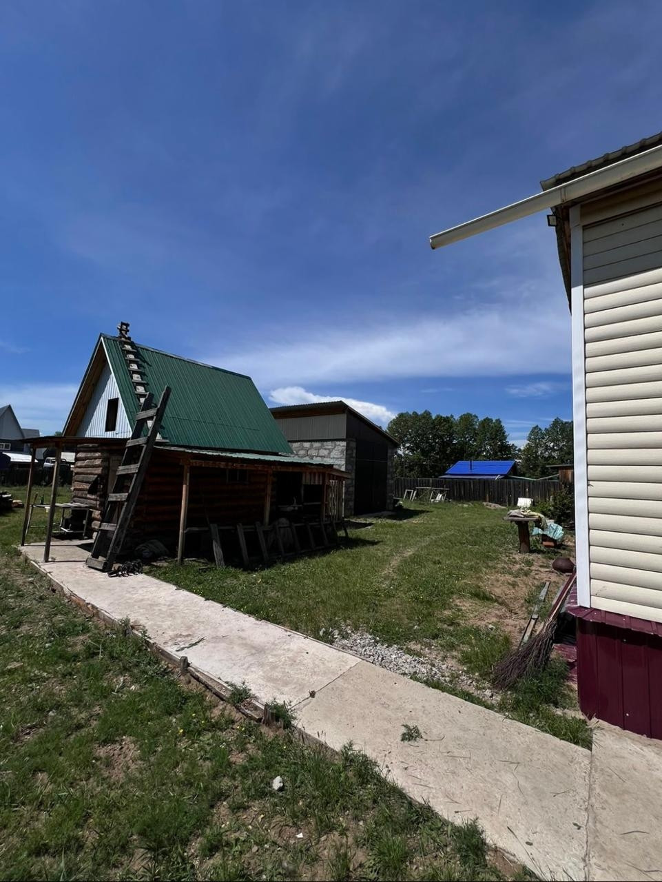 На территории: большой гараж и один пристроен к дому, баня.