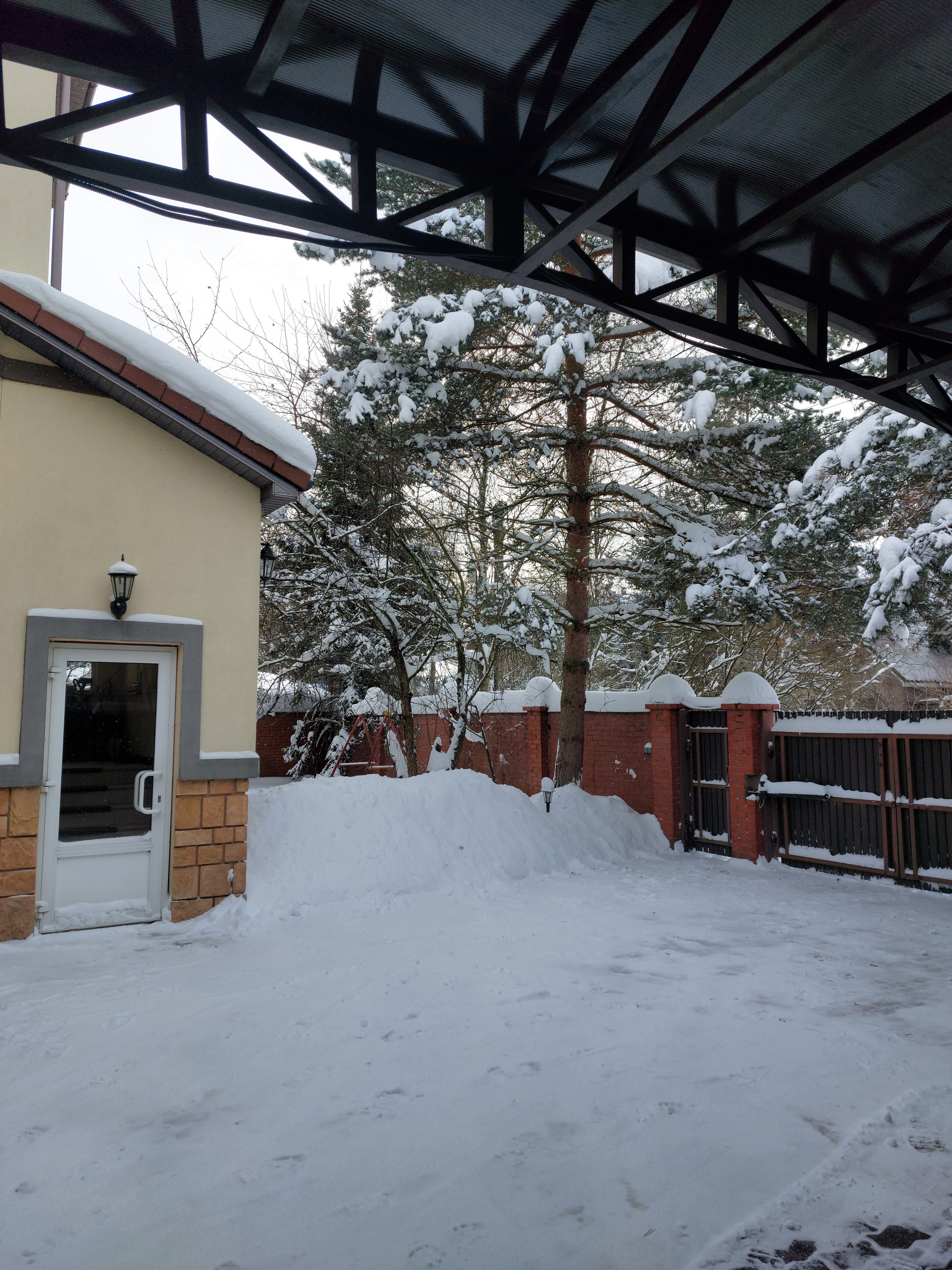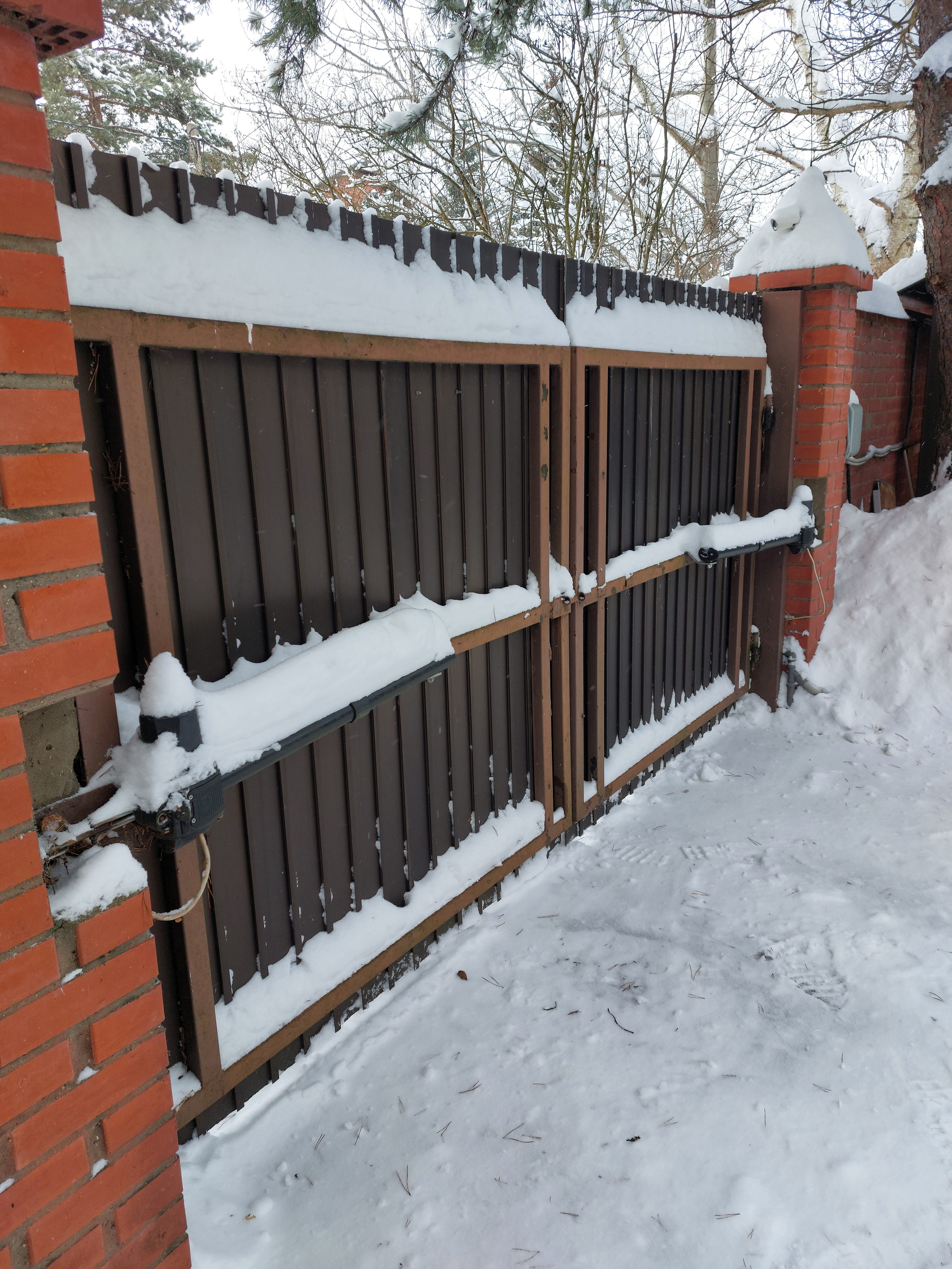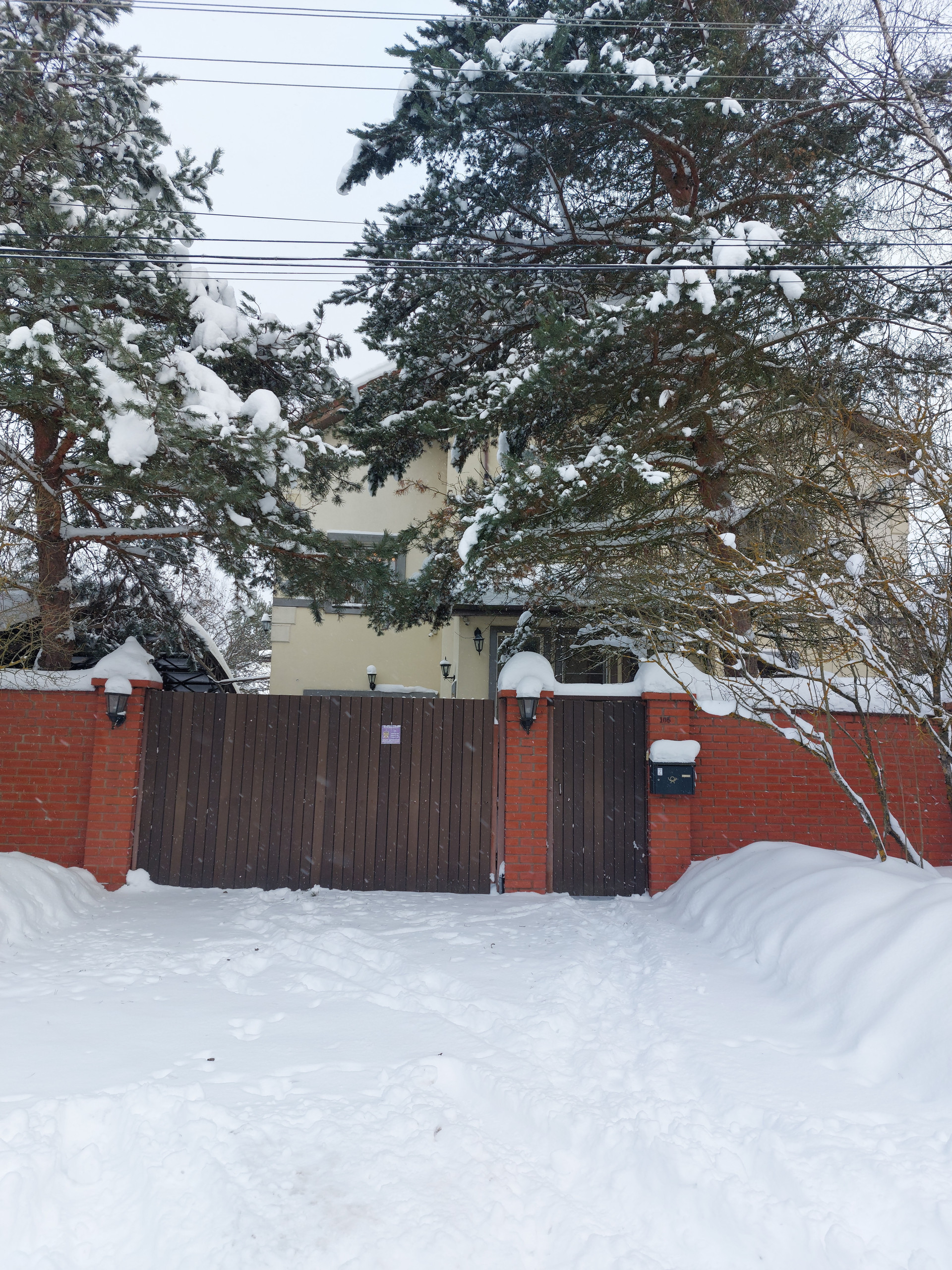 На участке расположен двухэтажный дом для персонала (или ГОСТЕВОЙ ДОМ), крытая беседка-барбекю, навес для 3-4 а/м, мощеная площадка на 2 а/м. Автоматические ворота.