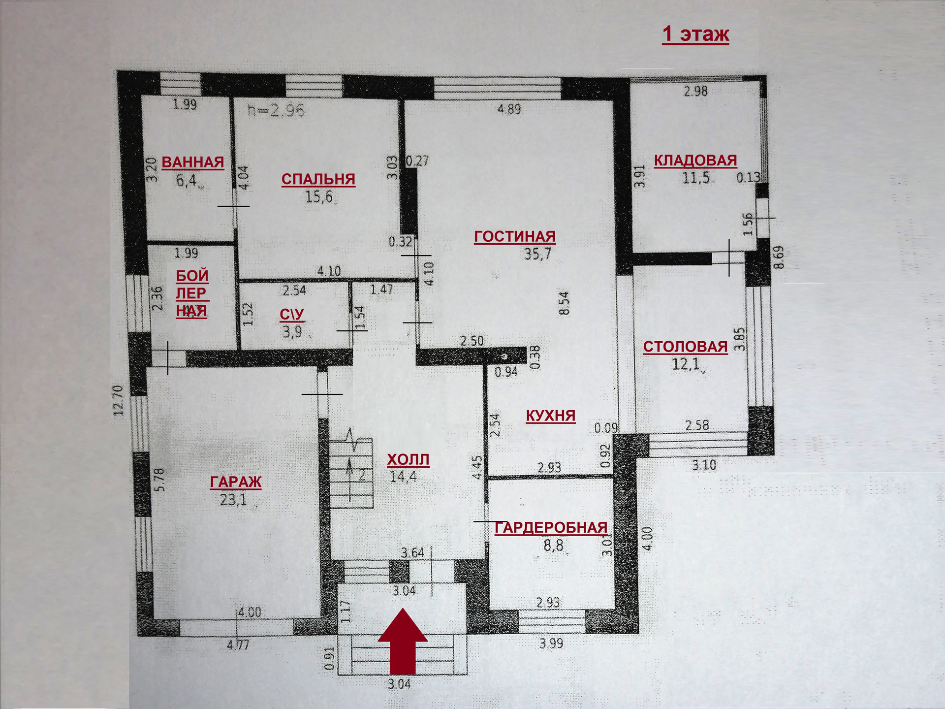 На 1 этаже: просторный холл, большая гостиная с камином, кухня, столовая, спальня, гардеробная, два санузла, а также котельная, гараж и кладовая.