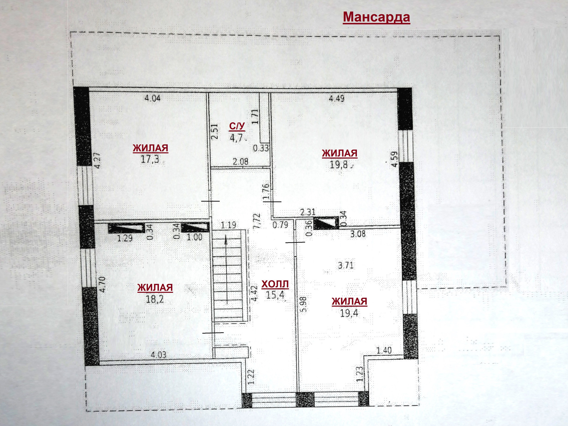 На 2 этаже: холл, четыре жилые комнаты и санузел.