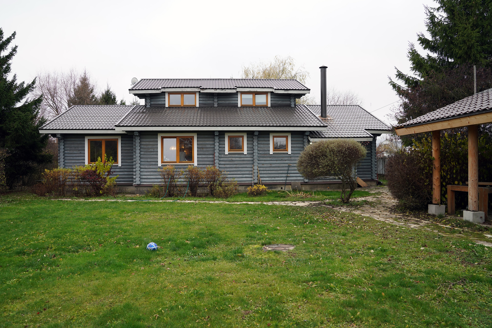 Дом построен из бруса.