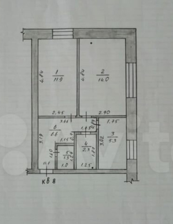 Общая площадь 41.4 м2