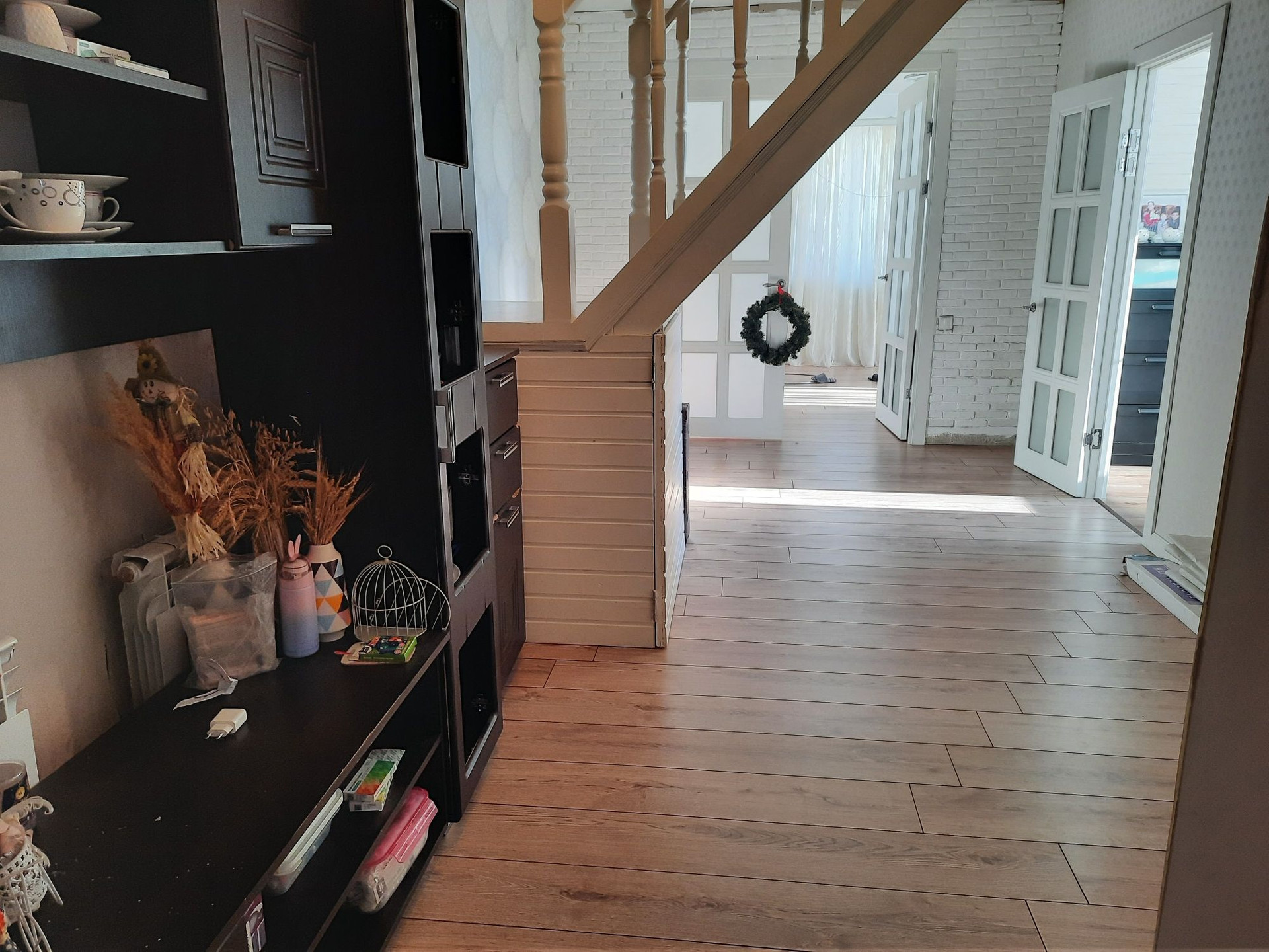 на 1м этаже : кухня, гостиная, совмещенный санузел, спальня