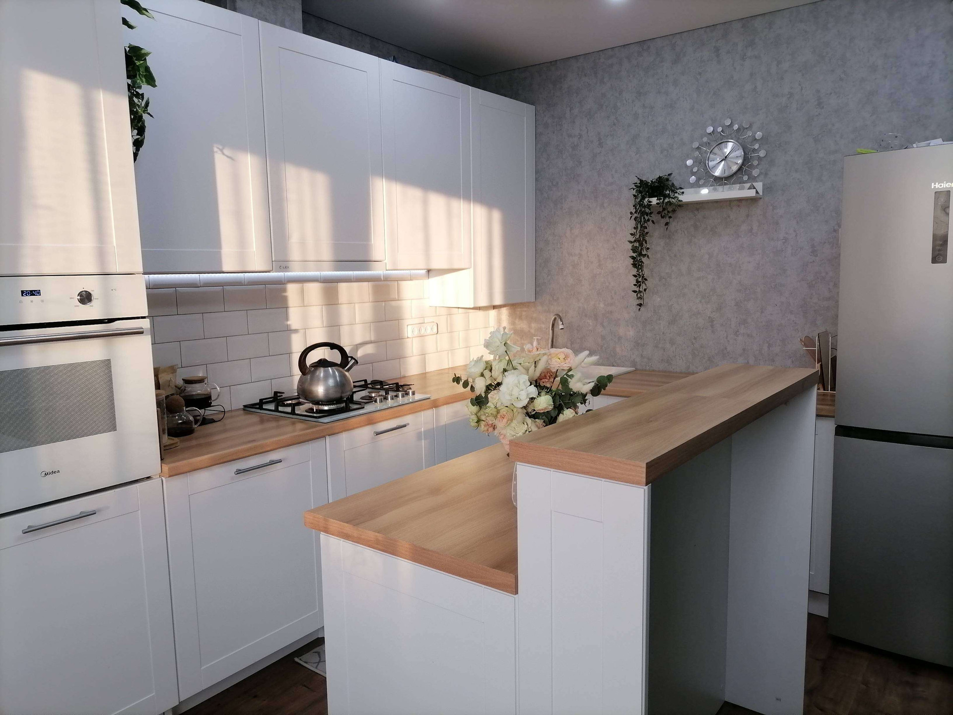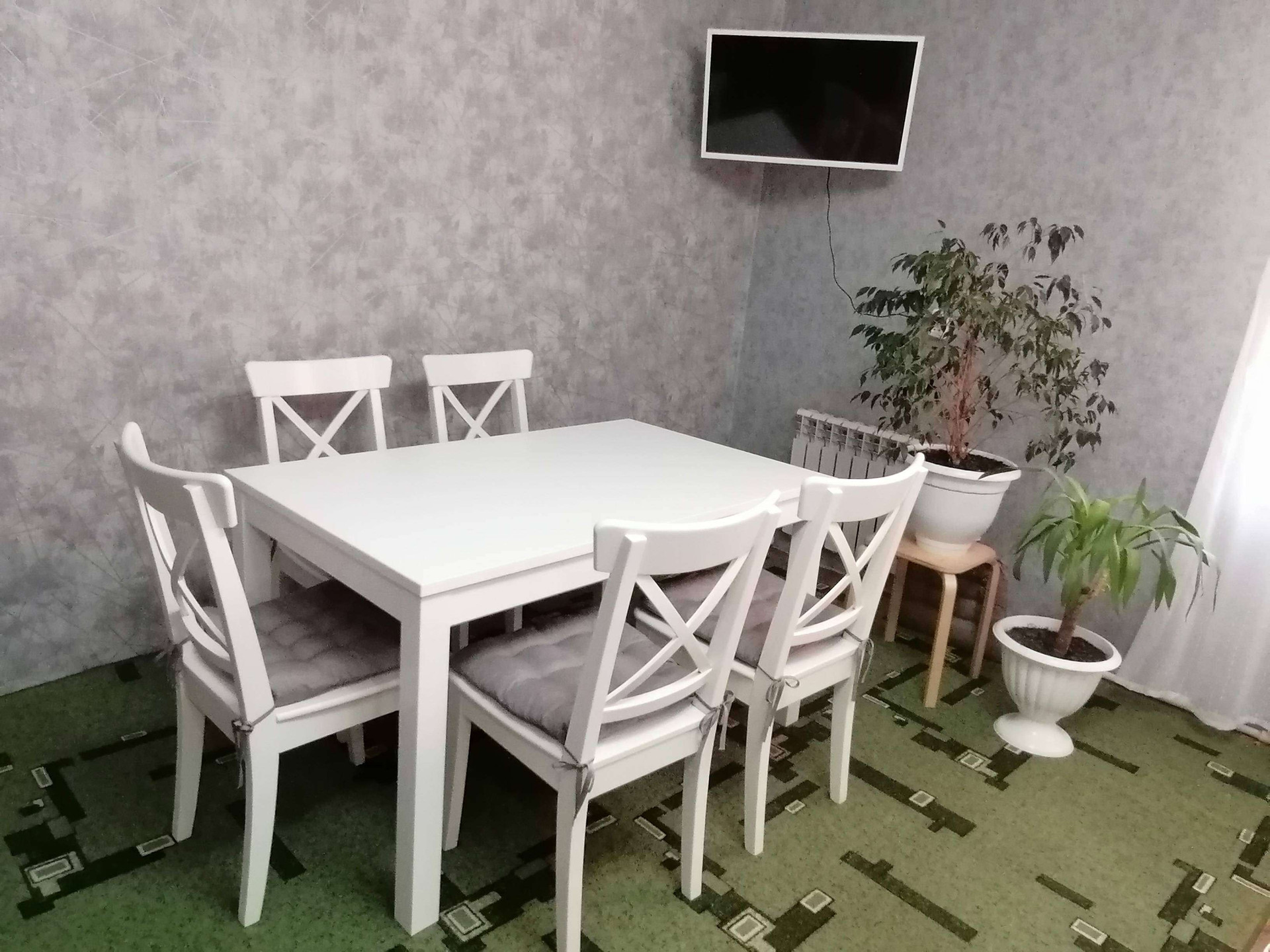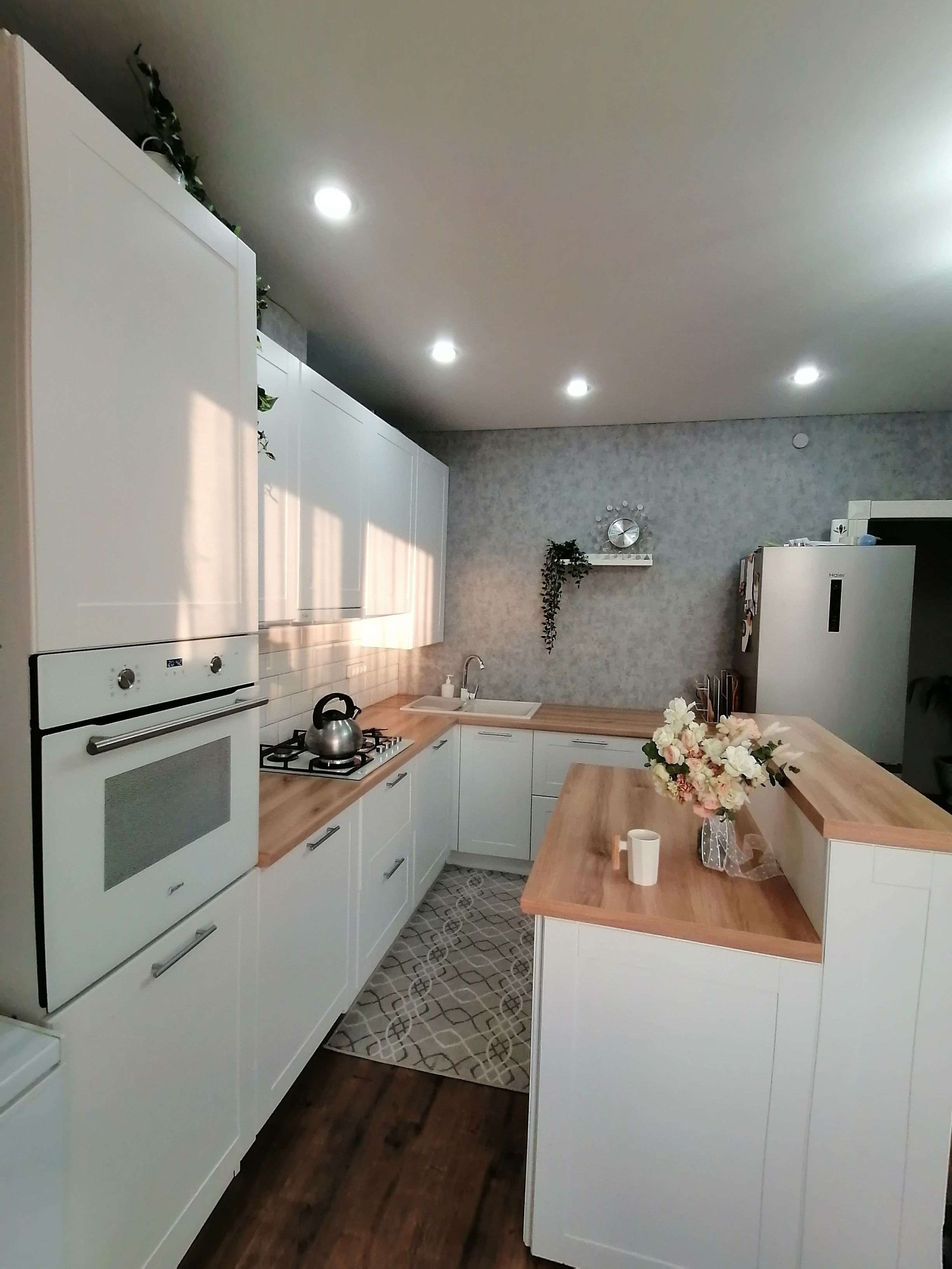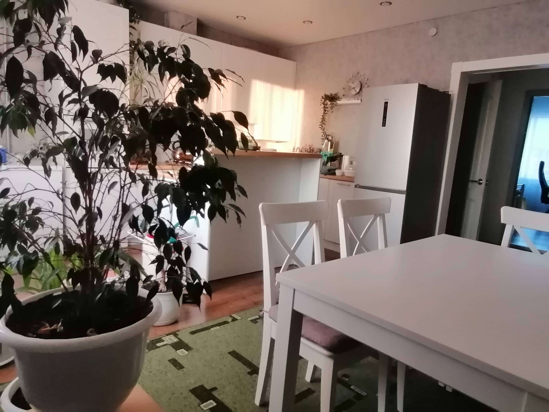 Площадь дома 104 кв. м.: 2 спальни, гостиная, кухня, санузел. Встроенный кухонный гарнитур и островок остается.Во всем доме- водяной теплый пол. Все потолки натяжные. Газовое отопление , электричество, вода в доме (напор хороший, перебоев с водой никогда не бывает). Во дворе вместительный огромный гараж, может поместиться 8 автомобилей, с двумя автоматическими воротами, и ворота с выездом во двор. Зимой машина заводится без проблем и не нужно чистить двор от снега. На участке имеется летняя кухня и баня под одной крышей, в летнюю кухню проведен газ, теплый пол, вода.