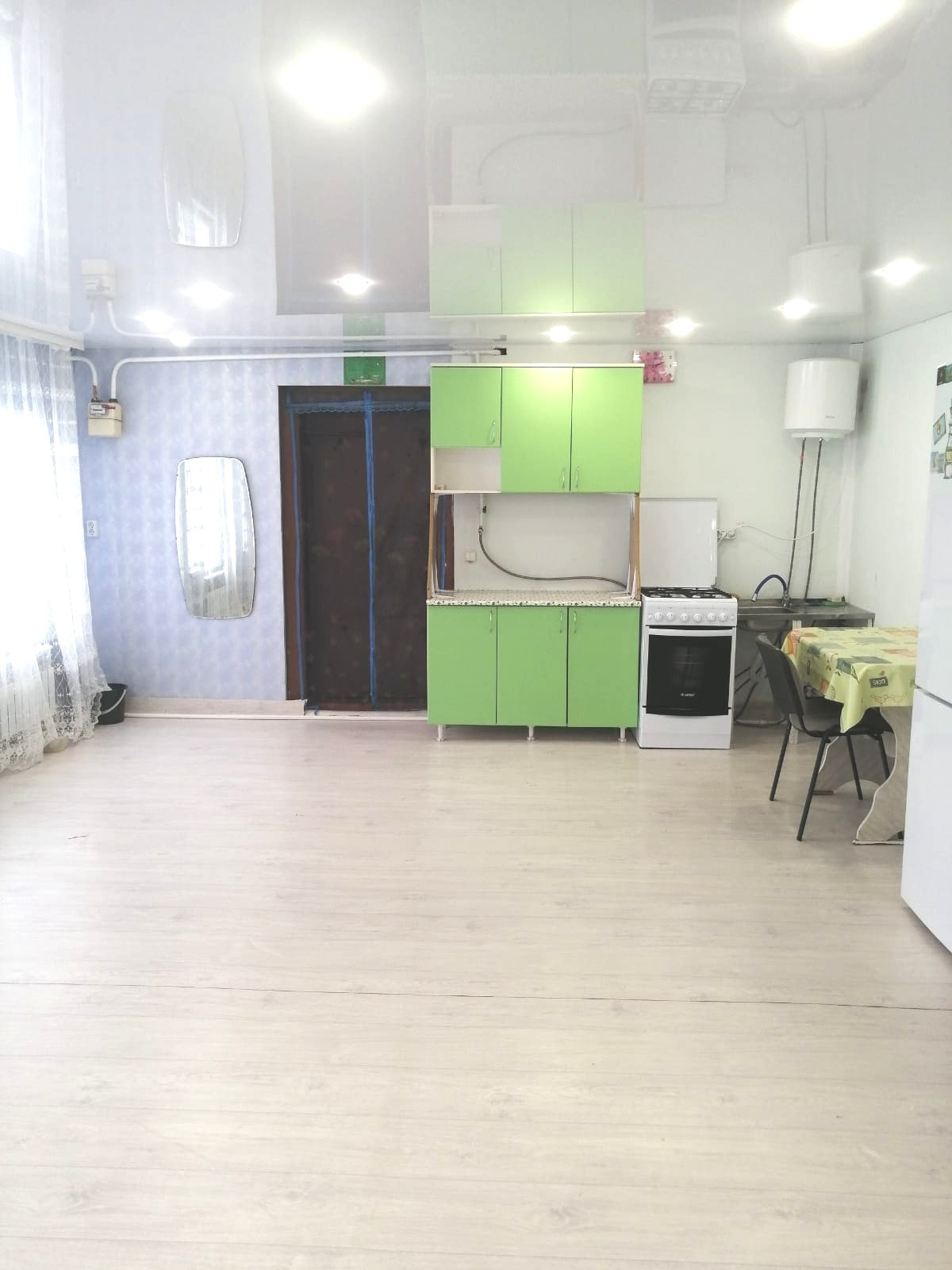 Дом просторный, кухня с залом совмещены, 2 спальной комнаты. Санузел в доме, евро окна, натяжной потолок, во всех комнатах ленолеум. Крышу обновили в 2023 году. Возможен торг.