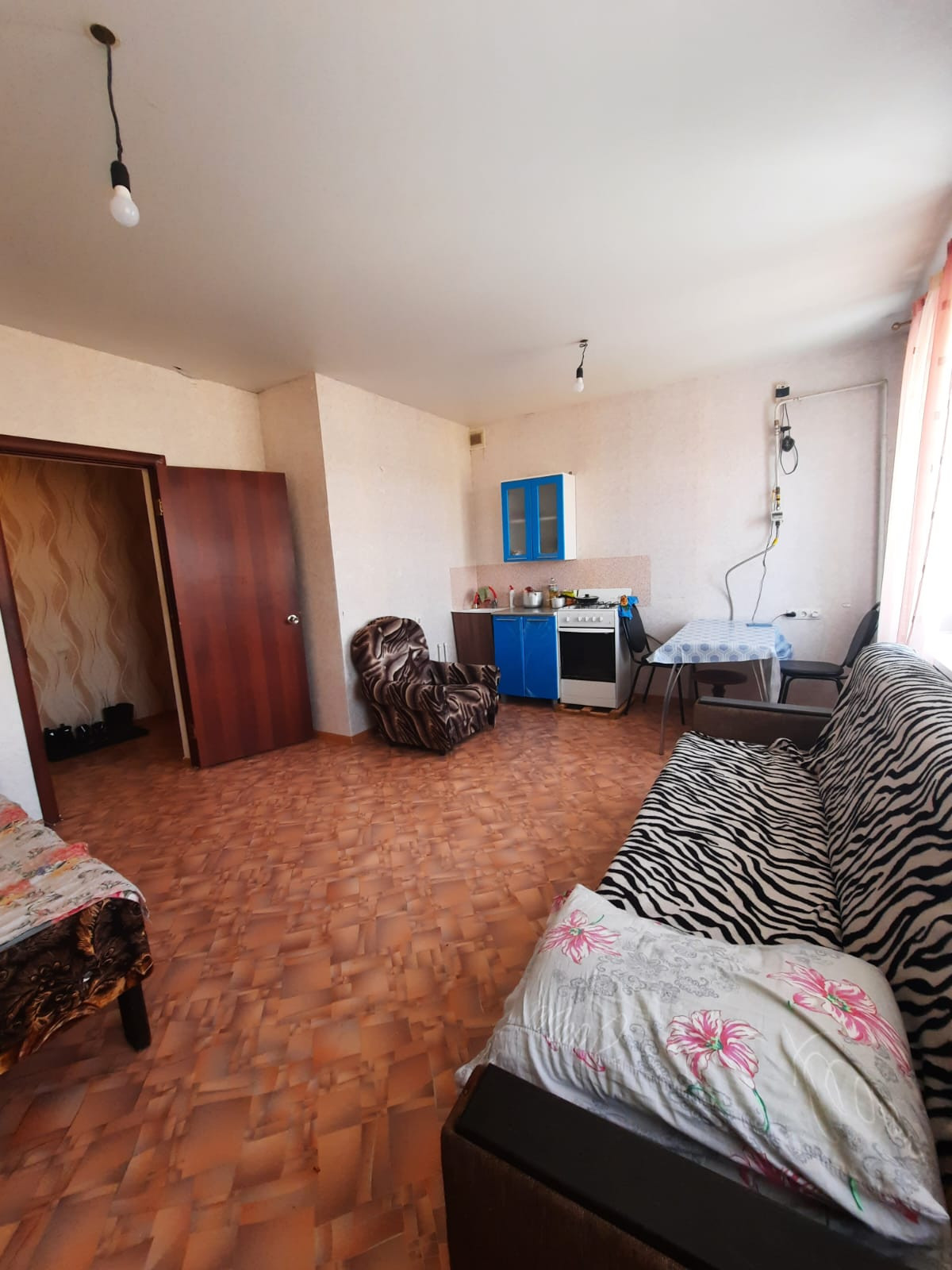 Квартира-студия расположена на 3 этаже , совмещенный санузел, школа, банк, больница магазины все в шаговой доступности.