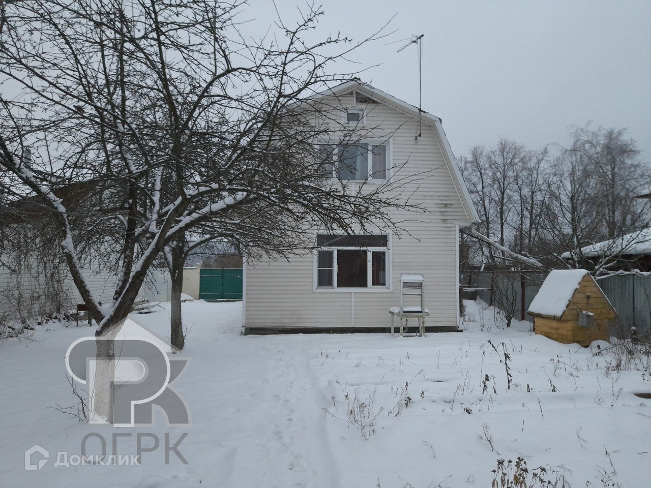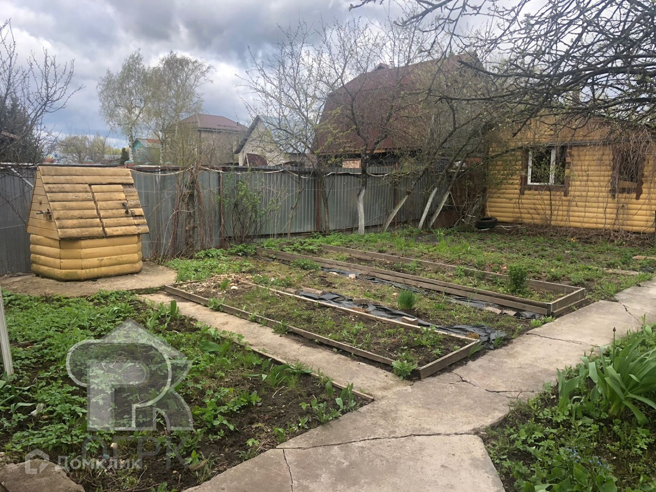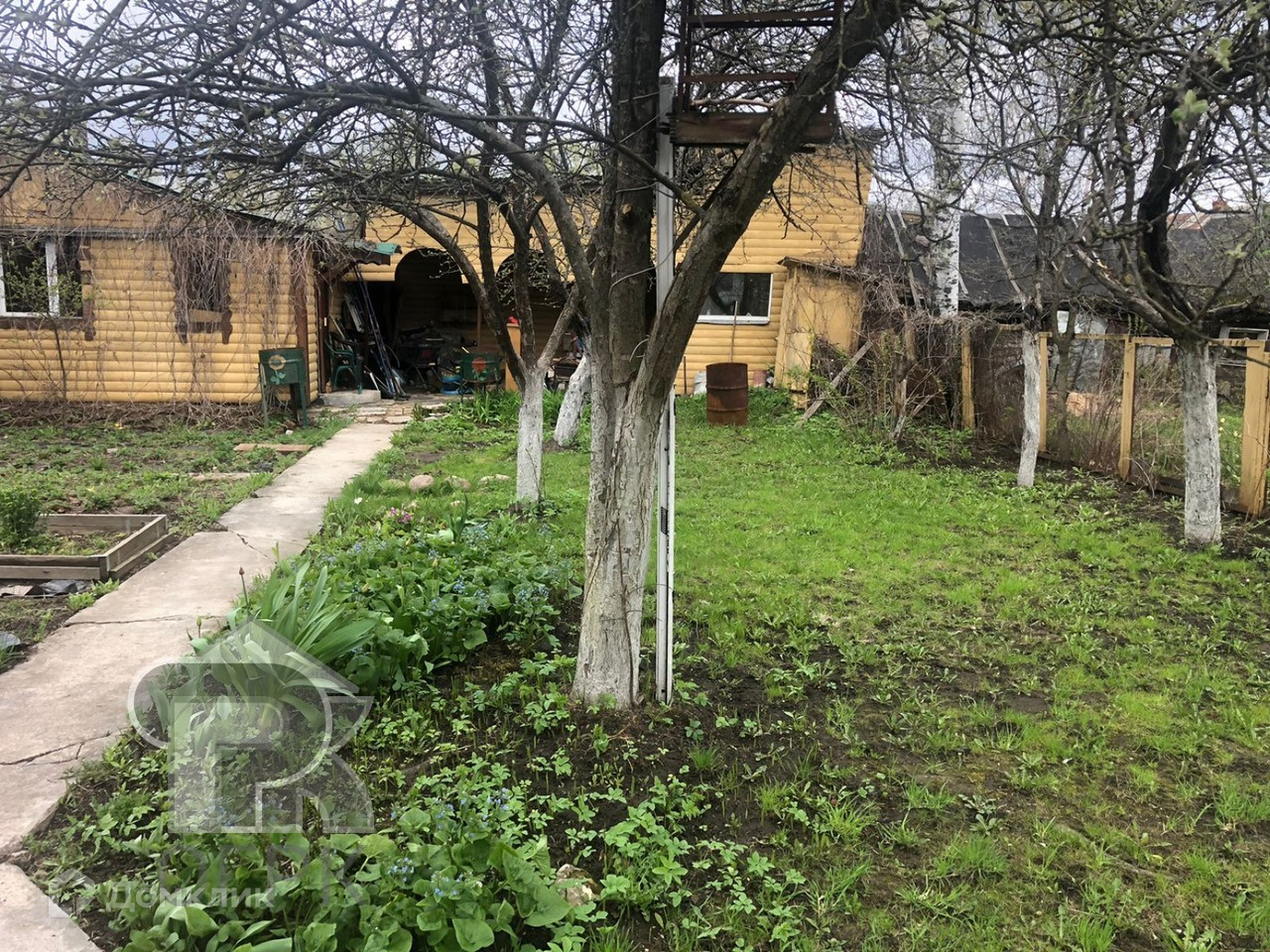 На участке расположены: дом с гаражом на две машины, баня, зона барбекю, хозяйственная постройка, сад с плодовыми деревьями, огород.