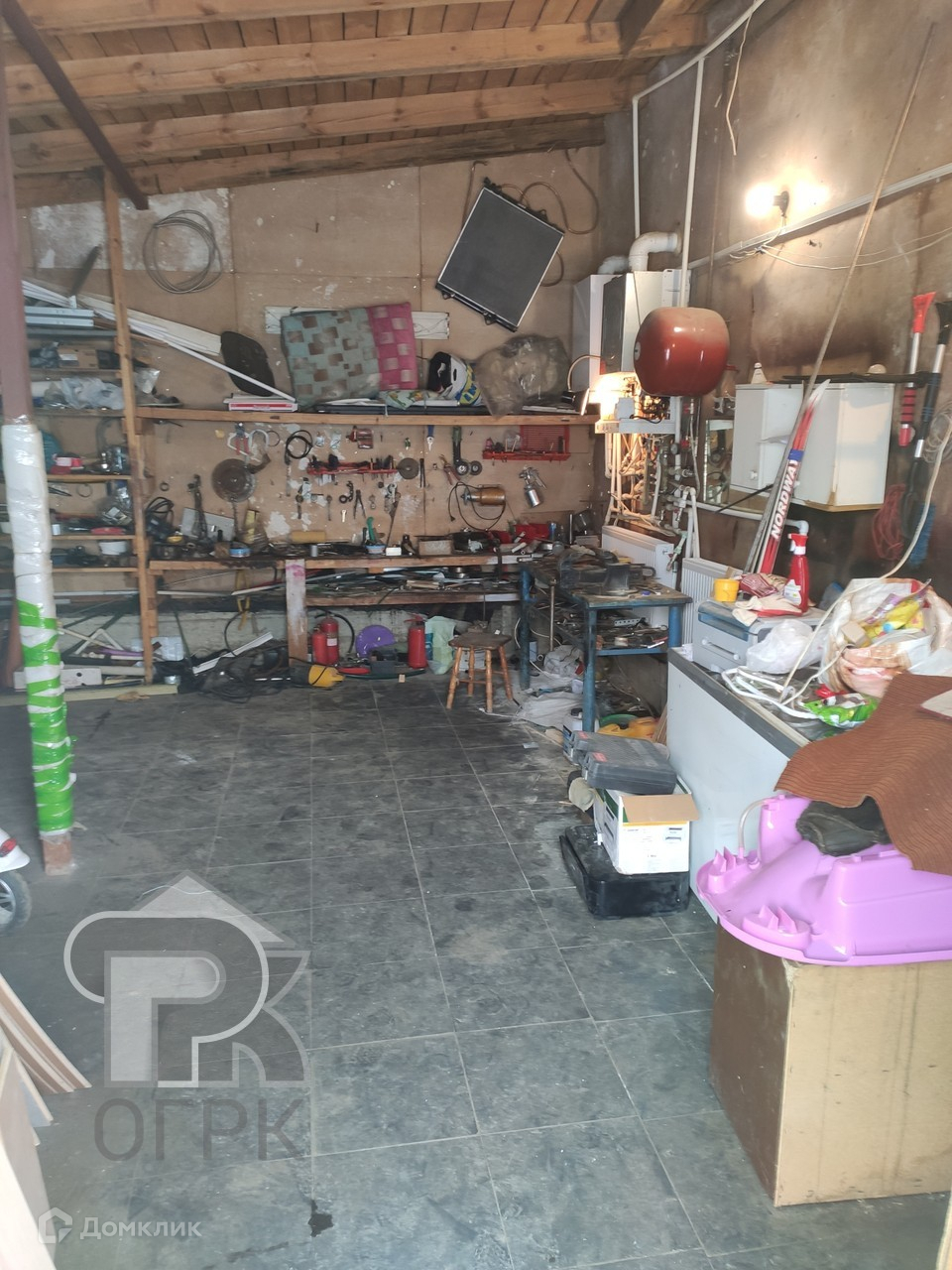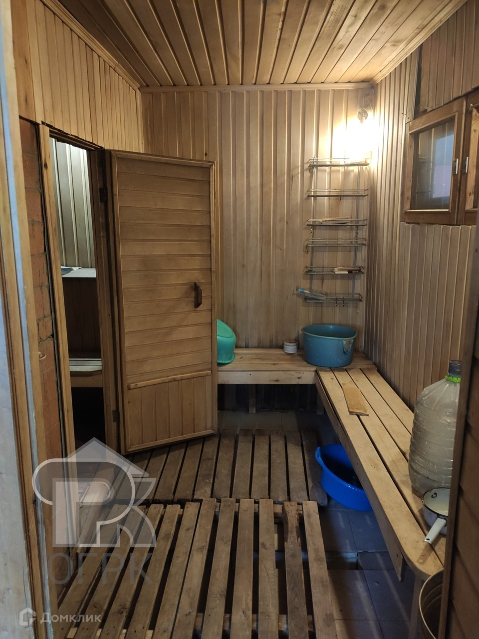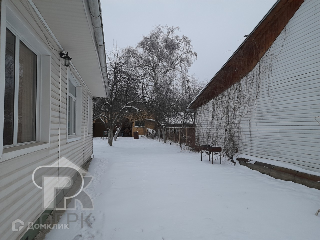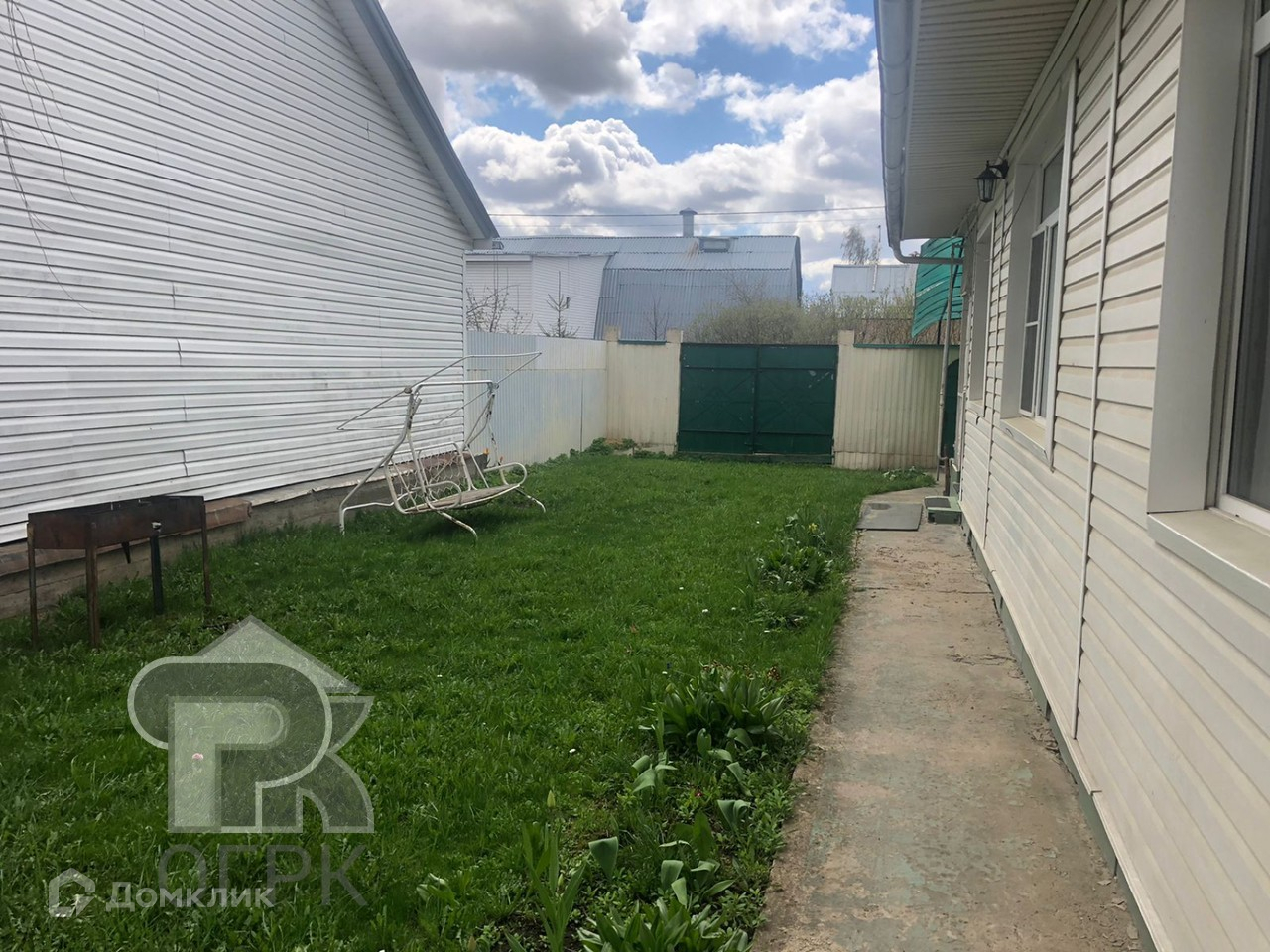 На участке расположены: дом с гаражом на две машины, баня, зона барбекю, хозяйственная постройка, сад с плодовыми деревьями, огород.