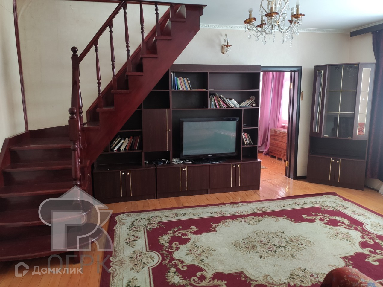 На 1 этаже: просторная кухня, гостинная, спальня, санузел.