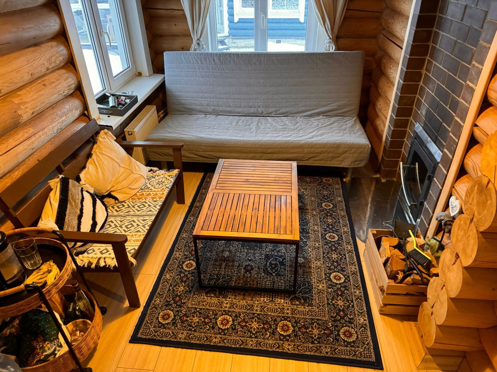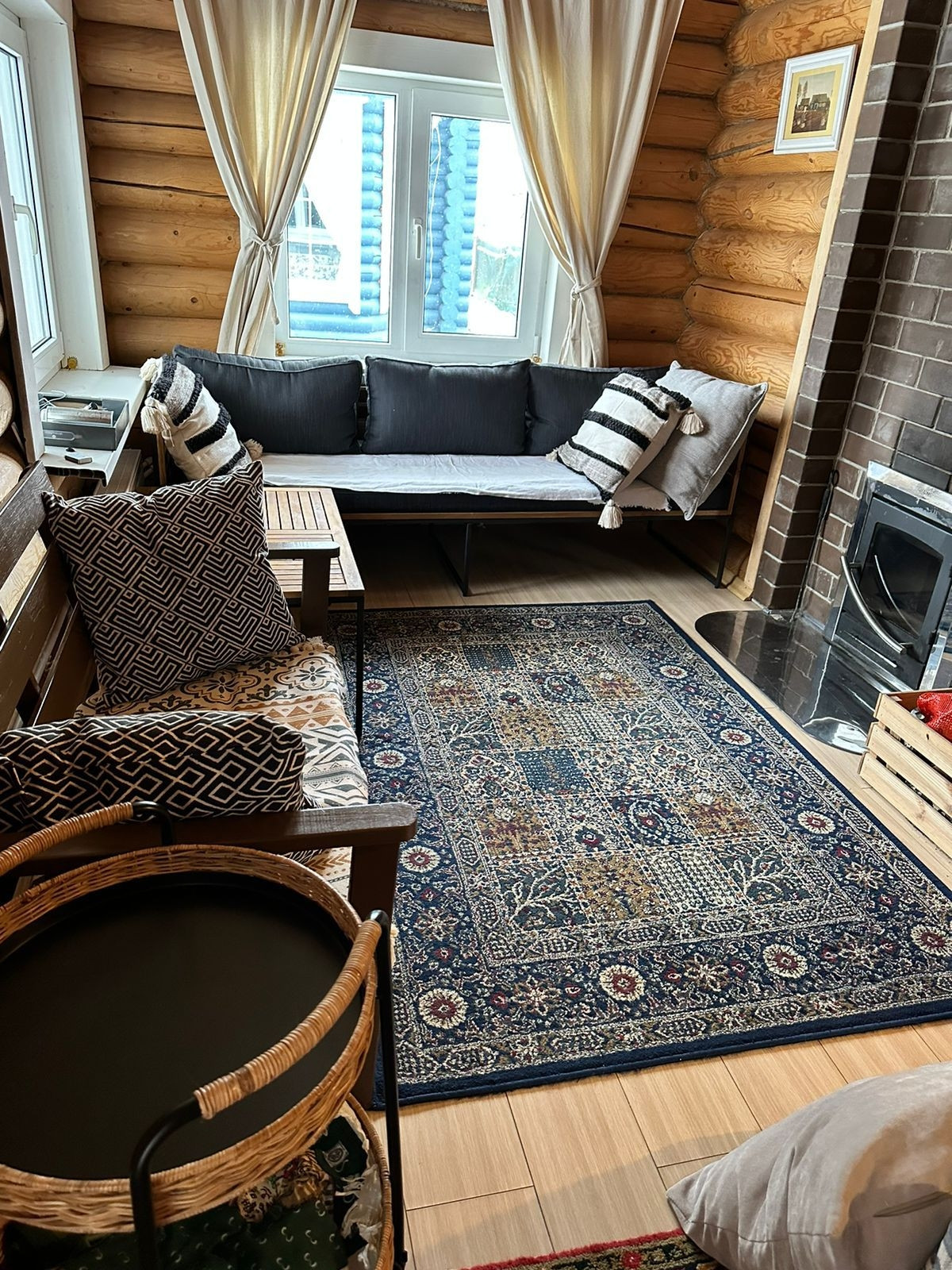 Веранда и входная группа изготовлена из лиственницы. Теплый пол в коридоре и санузлах, посудомоечная и стиральная машины, микроволновая печь - все в идеальном состоянии и на гарантии! Дом изготовлен из высококачественного оцилиндрованного бревна - стоит на цельной плите!!