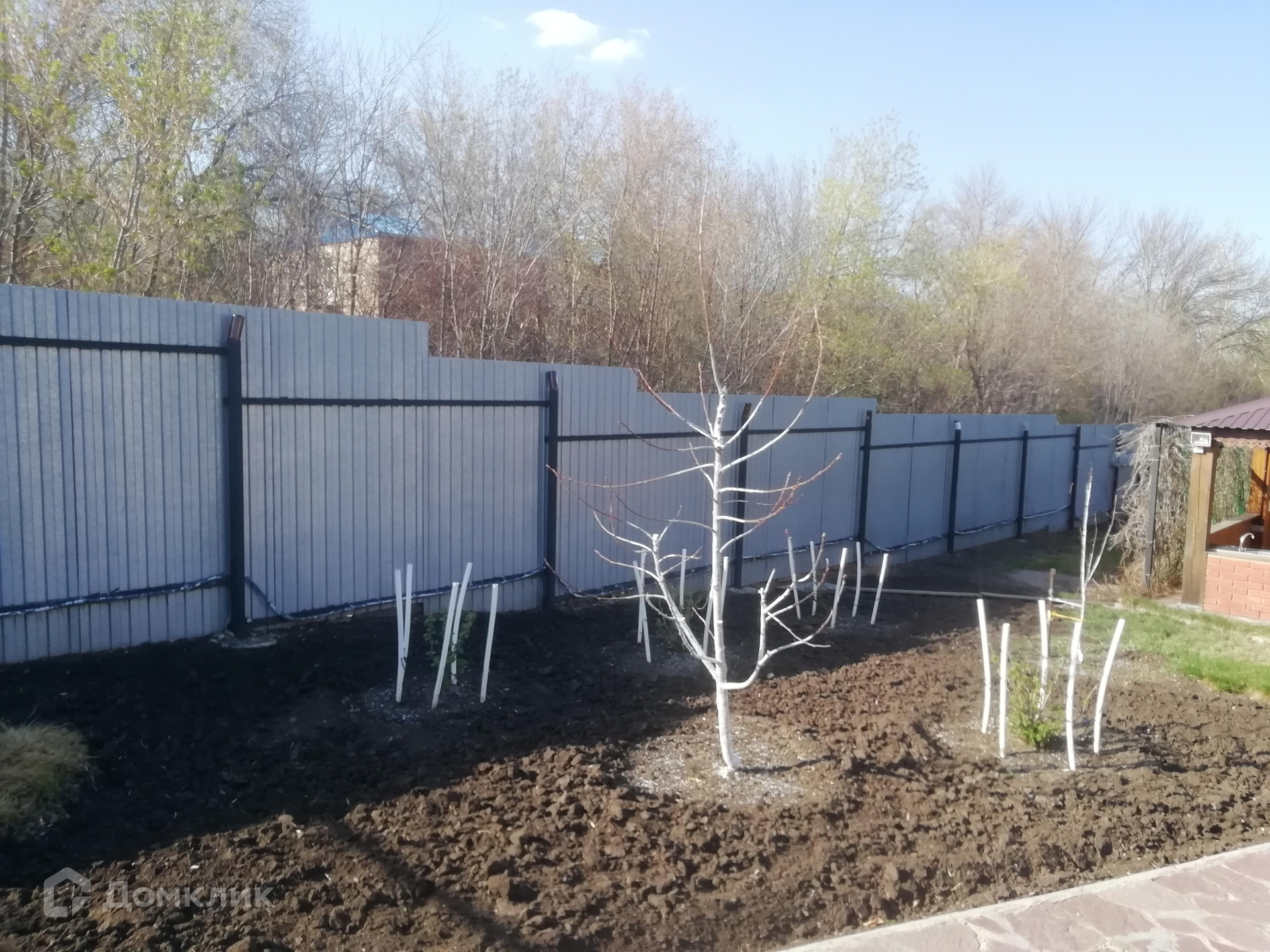 За участком территория обрабатывается, высажены кусты сирени, засеян газон.