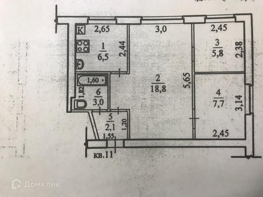 Площадь кухни 6 м2