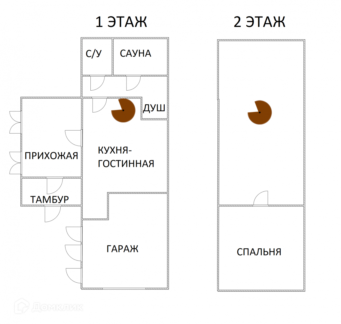 - Первый этаж -гараж, кухня - гостиная, С/У, сауна, ;