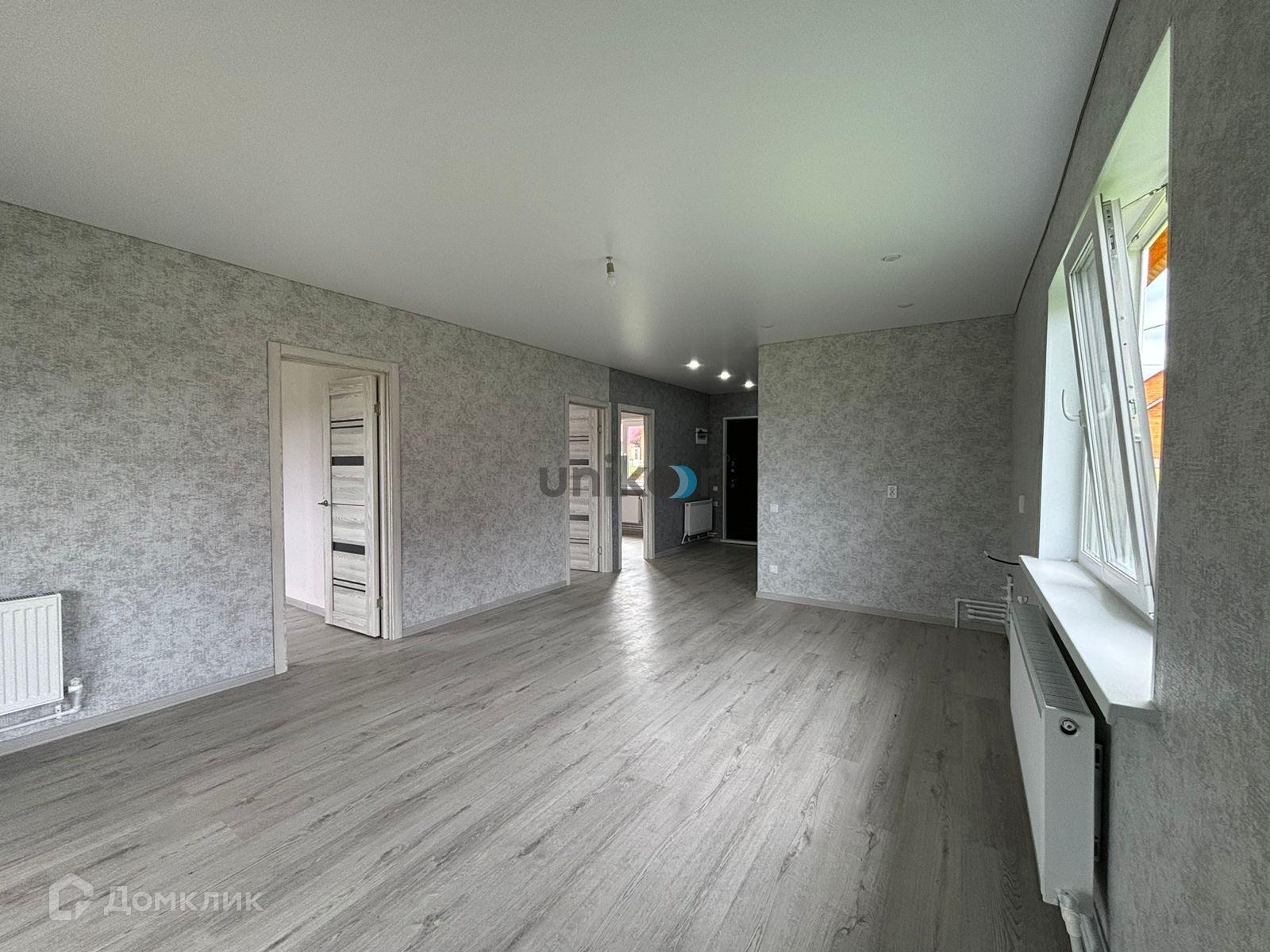 Коммуникации: вода колодец, электричество 380, эл. отопление. По улице проложена газовая труба, что позволит, при желании завести в дом газовое отопление. Отделка чистовая: на полу ламинат, натяжные потолки, обои, сан.техника.