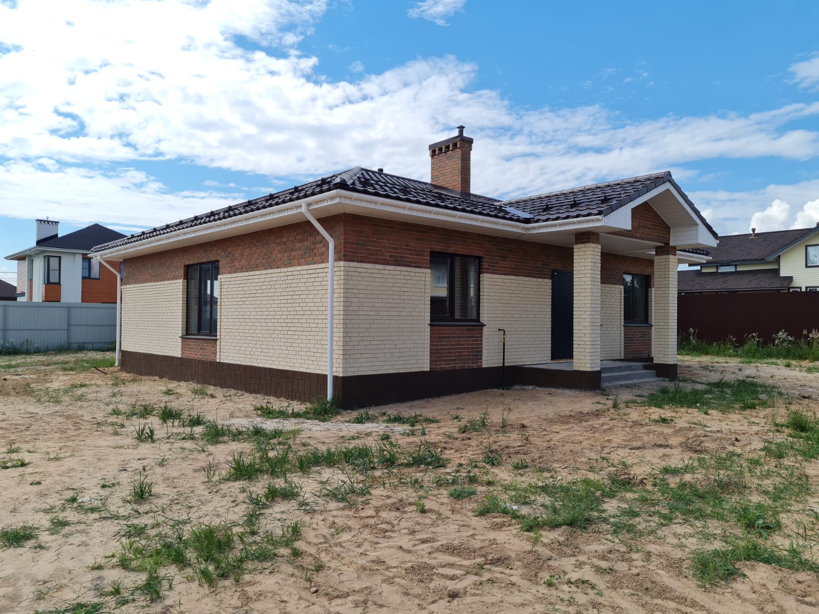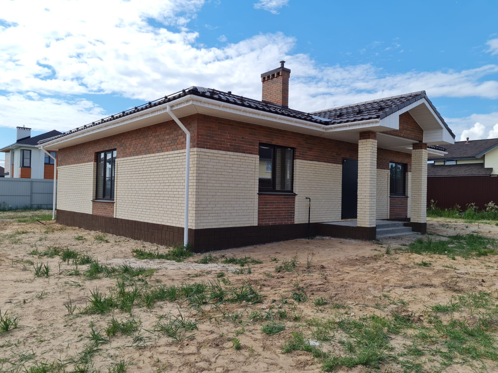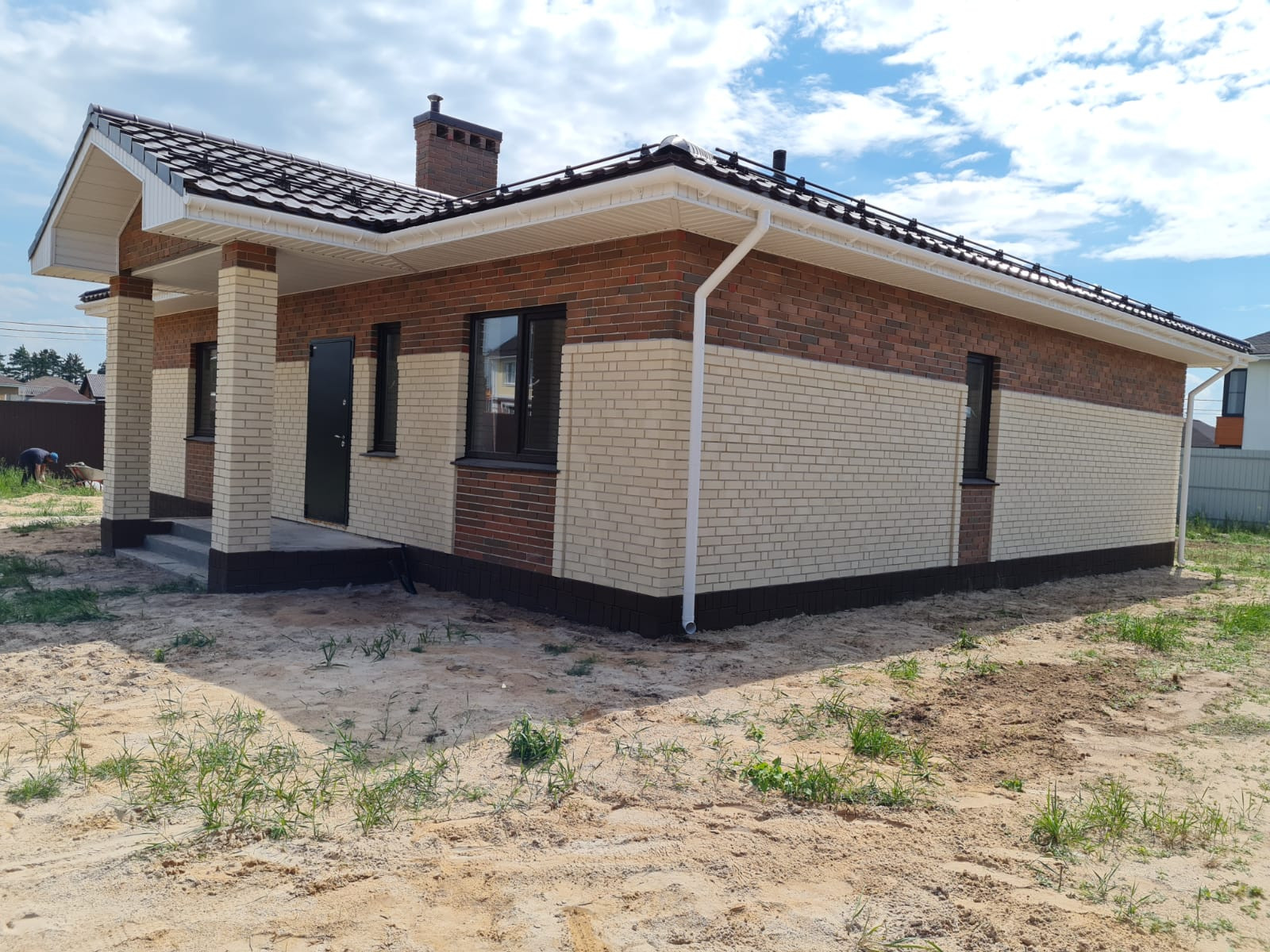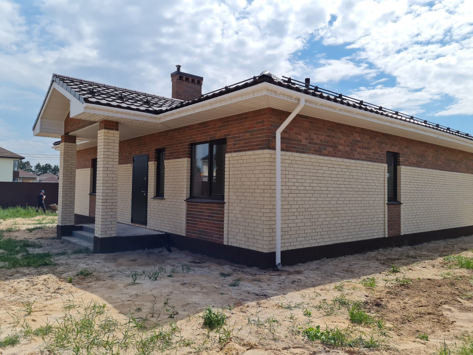 Облицован кирпичом.