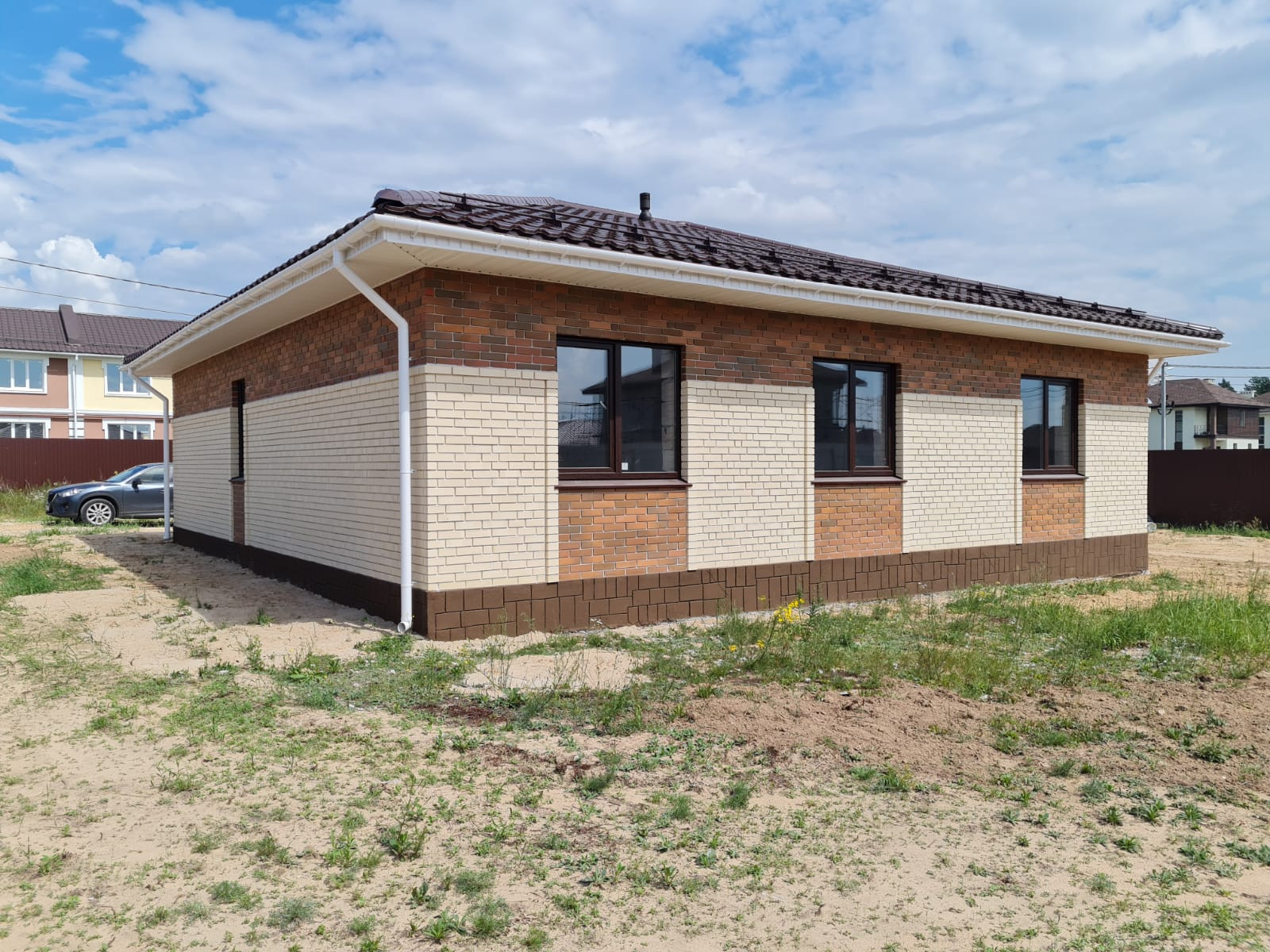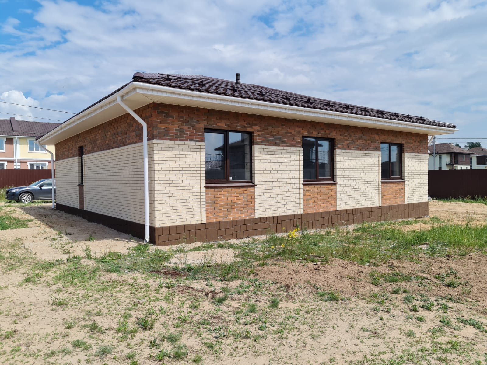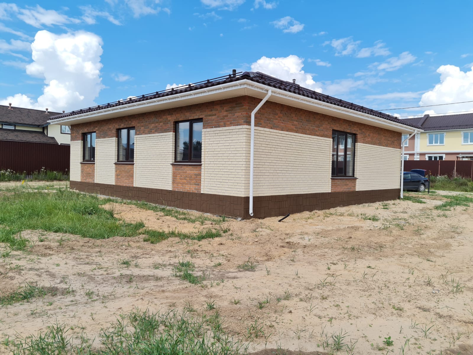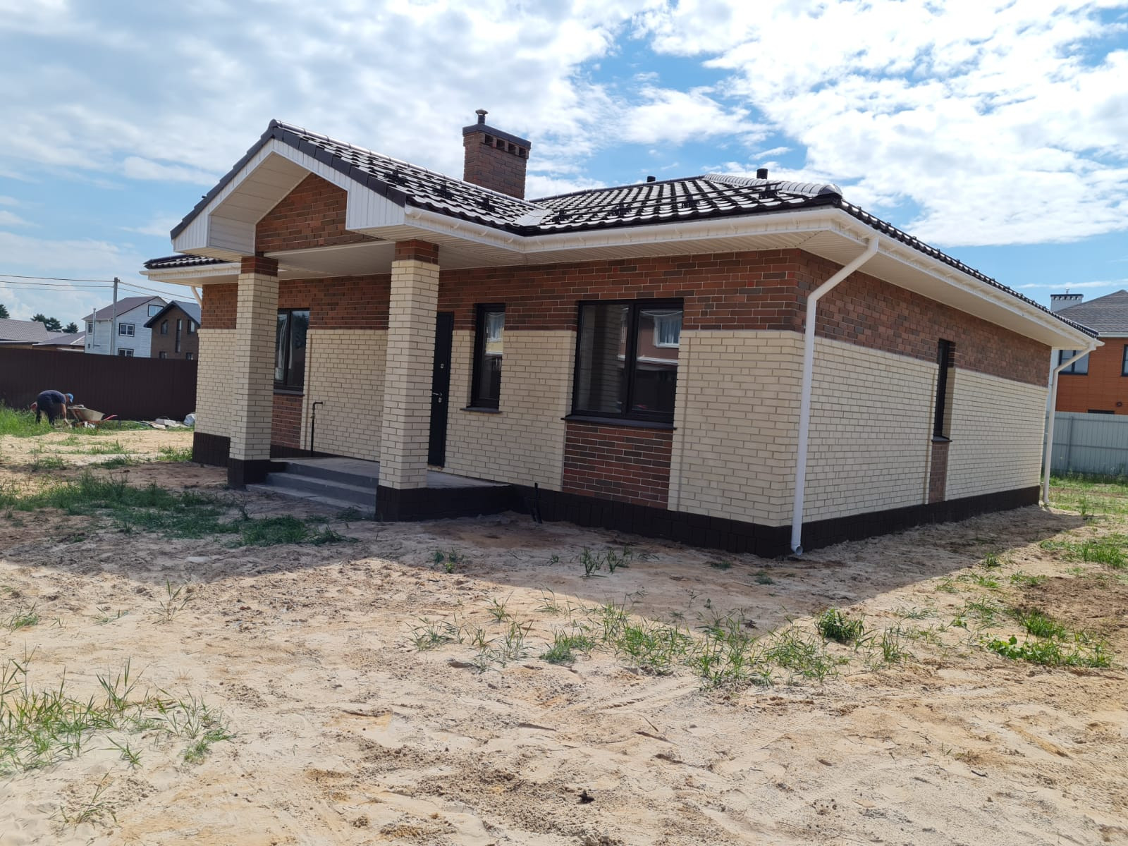 Облицован кирпичом.