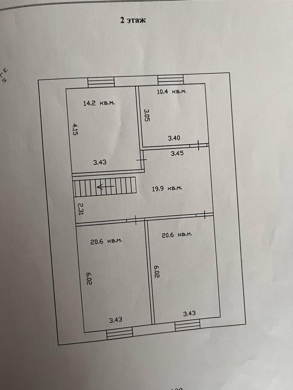 На втором этаже: три комнаты и просторный санузел - 10,4 кв.м.