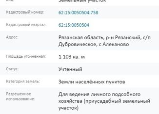 💲 Какая средняя цена продажи участка в селе Алеканово, Рязанская область?