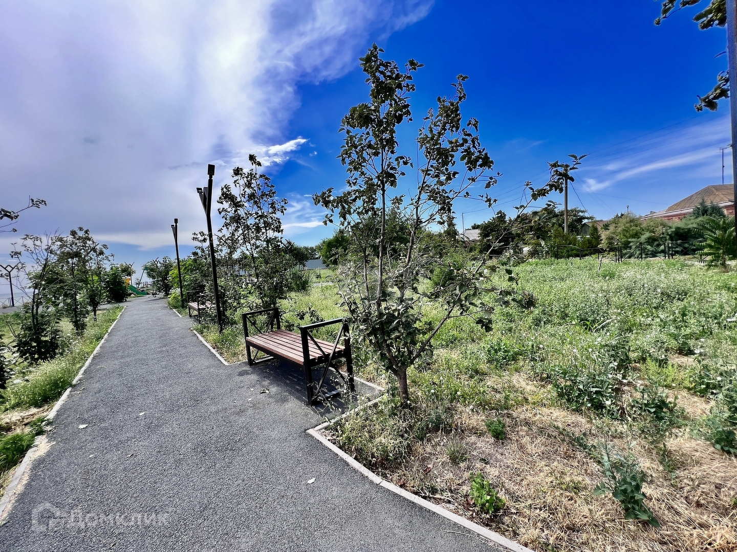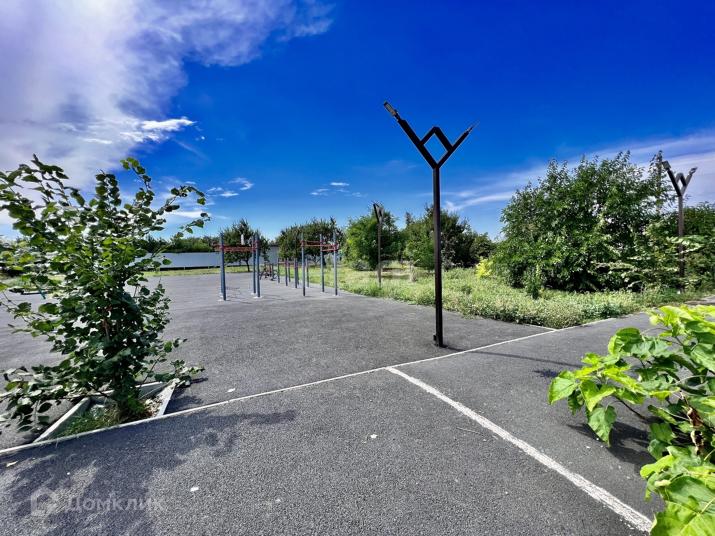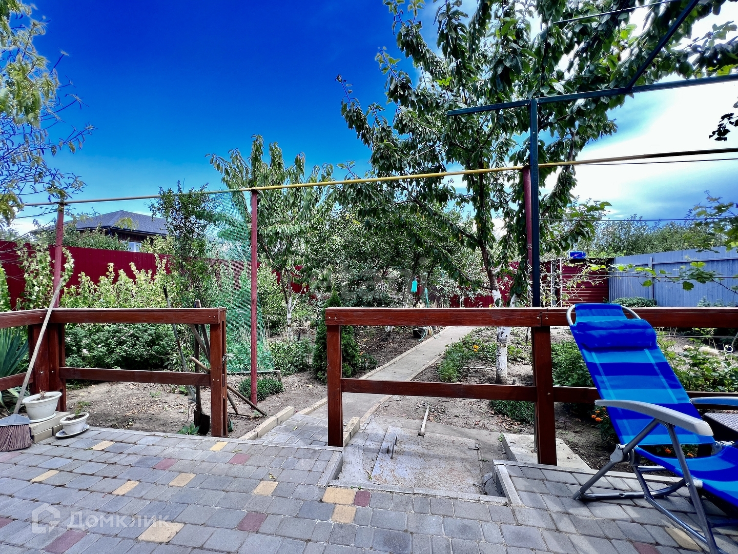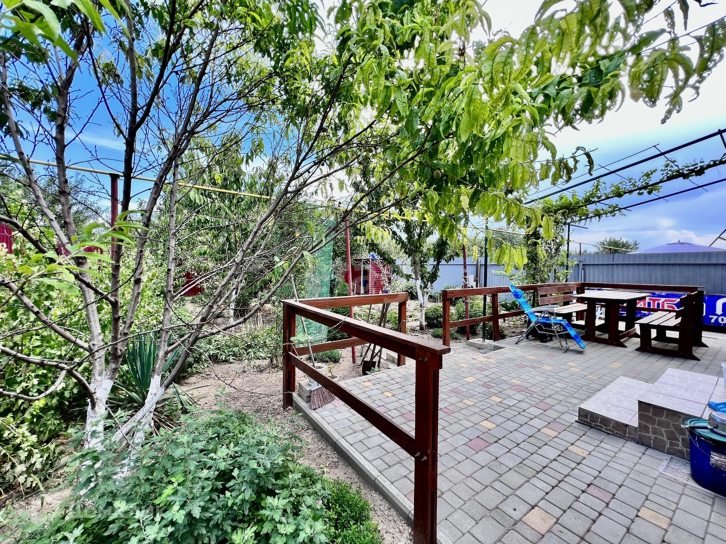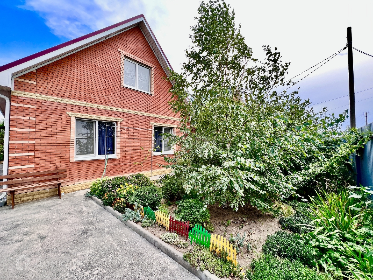 Перед домом разбит прекрасный газон с деревьями и цветами, а также имеется место для парковки автомобиля, что обеспечивает безопасность и удобство. Двор полностью благоустроен, есть место для отдыха и зона барбекю, что делает его идеальным местом для проведения времени с семьей и друзьями.
