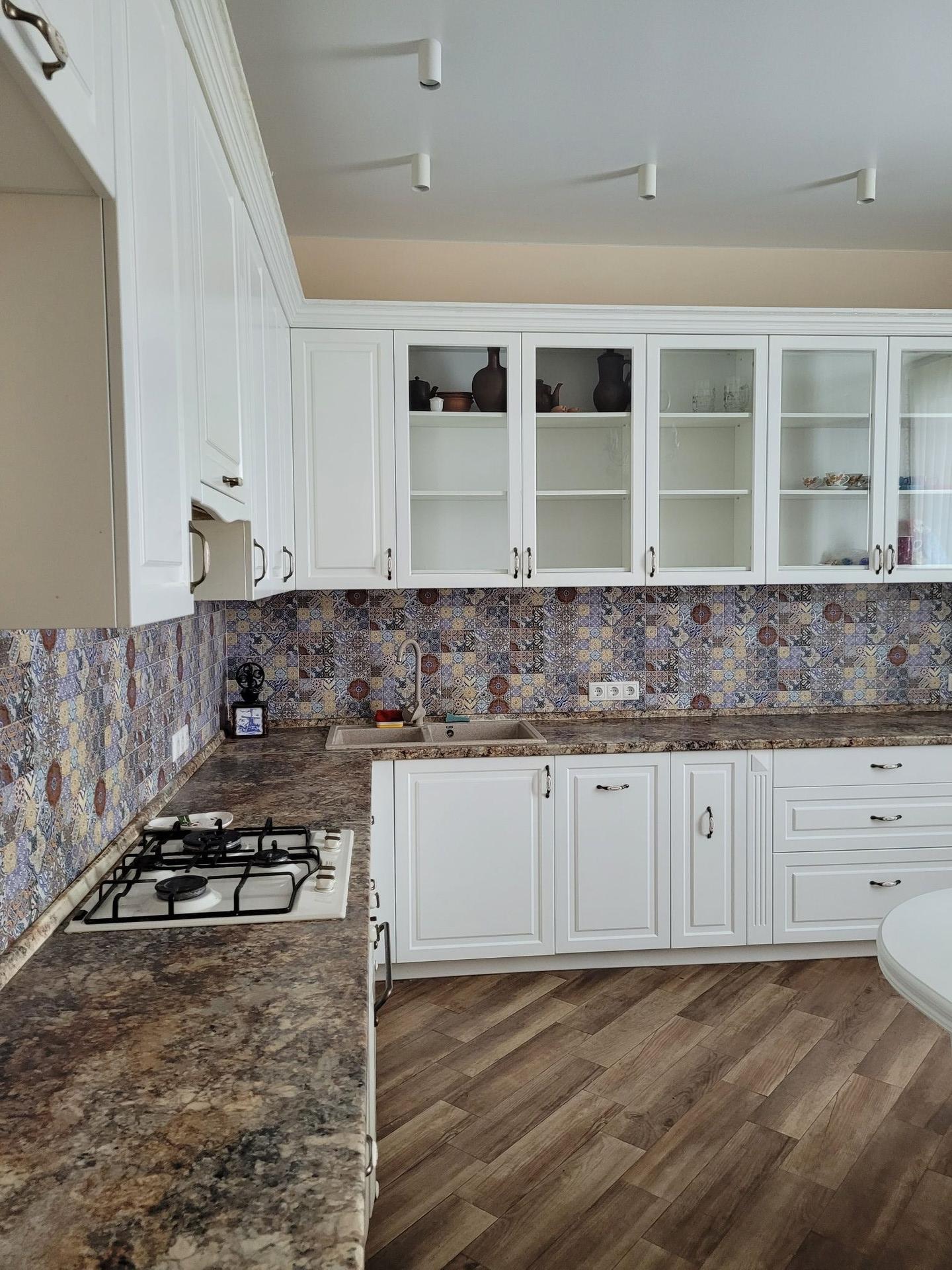 В доме произведён качественный современный ремонт, во всем доме тёплый пол, в каждой комнате размещён кондиционер. Вся мебель и техника остаётся. Кухня 22 кв.м.: стенка в идеальном состоянии, встроенная техника, холодильник, большой обеденный стол, 3 спальни по 20 кв.м., уютный холл 34 кв.м. с камином, ванная комната с мебелью. Отдельно стоящий гараж с автоматическими воротами, гостевая комната 20 кв. м. с мебелью и ремонтом, вальеры тёплые и холодные, подходят для разведения животных. Плодоносящий молодой сад ( 4 года), растет вишня, абрикосы, груши, яблони, кусты смородины, малины, остаются две теплицы. На участке проведена вода. Участок полностью огорожен, автоматические ворота.