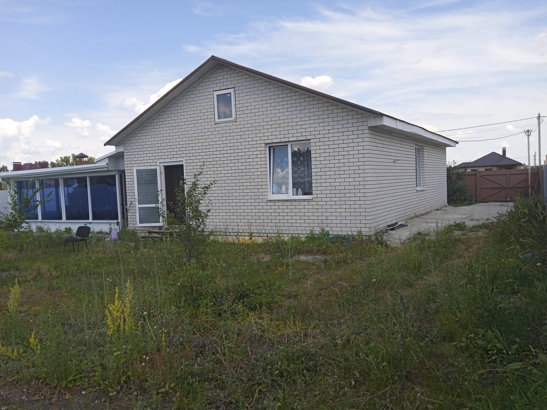 Не дозвонитесь пишите. Дом планировался на два этажа, заливался фундамент глубиной 1,4м шириной 65 см, по периметру утепление и гидроизоляция фундамента и дома, везде над дверными и оконными проемами бетонные литые перемычкой, по периметру стены обвязаны кирпичной кладкой для плит перекрытия. Скважина 31 м глубиной, диаметр трубы 125мм, две трубы первая пластик вокруг обсадная металл, электричество 380 и 220, газ труба под забором в стадии оформления, канализационная яма 3 м глубиной 3м шириной. Дом три комнаты, одна гостиная с отдельным входом со двора. Гараж 42м , разделён на три отдельных помещения- место под баню( кладовку), для технического имущества и для животных или продуктов, отдельно в гараже погреб. На улице навес для инвентаря подсобного хозяйства. Утепленная и застекленная веранда с кирпичной шашлычницей 23 м. Утепление крыльцо 15 м.