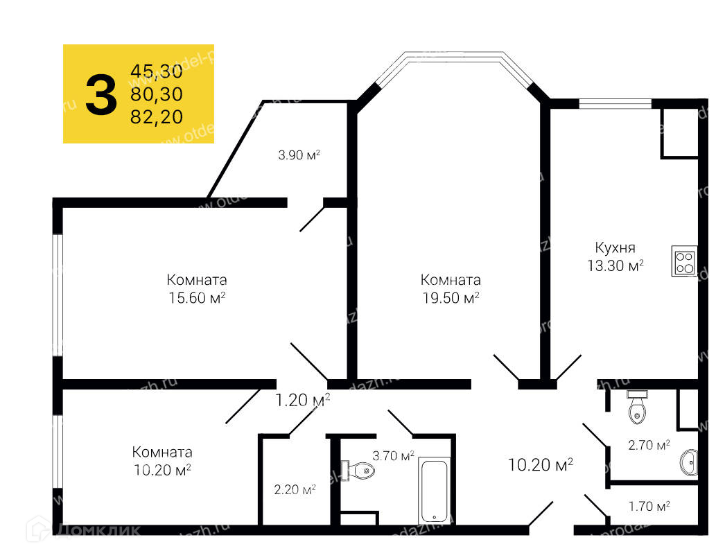 Общая площадь 82.2 м2