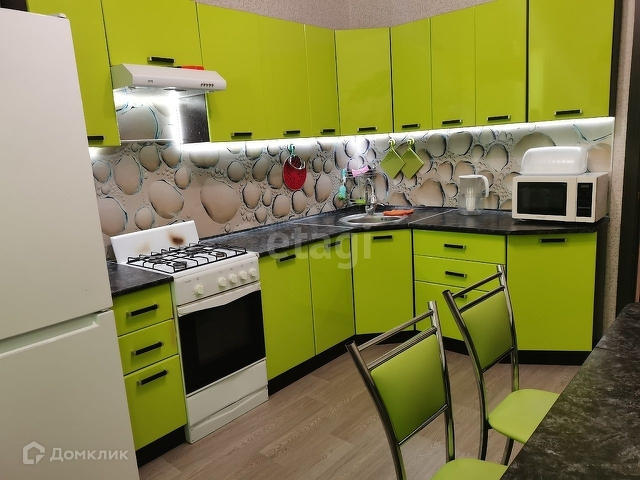 В квартире есть все для комфортного проживания: кондиционер, холодильник, плита, микроволновка, диван, кухонный гарнитур.