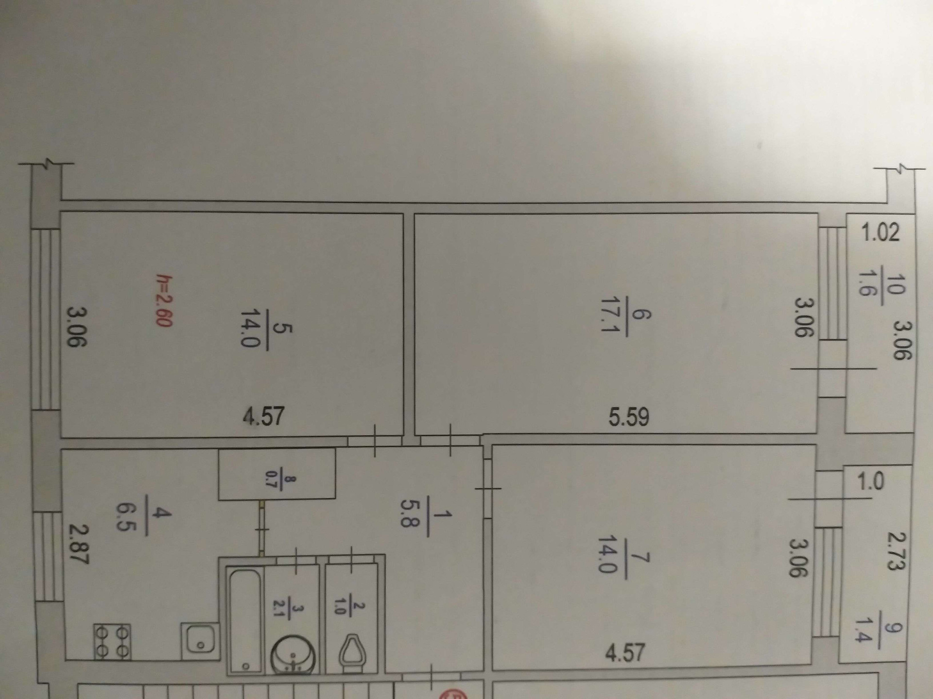 Высота потолков 2.6 м
