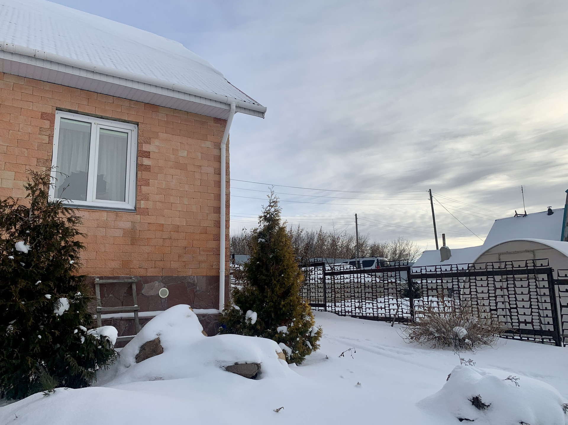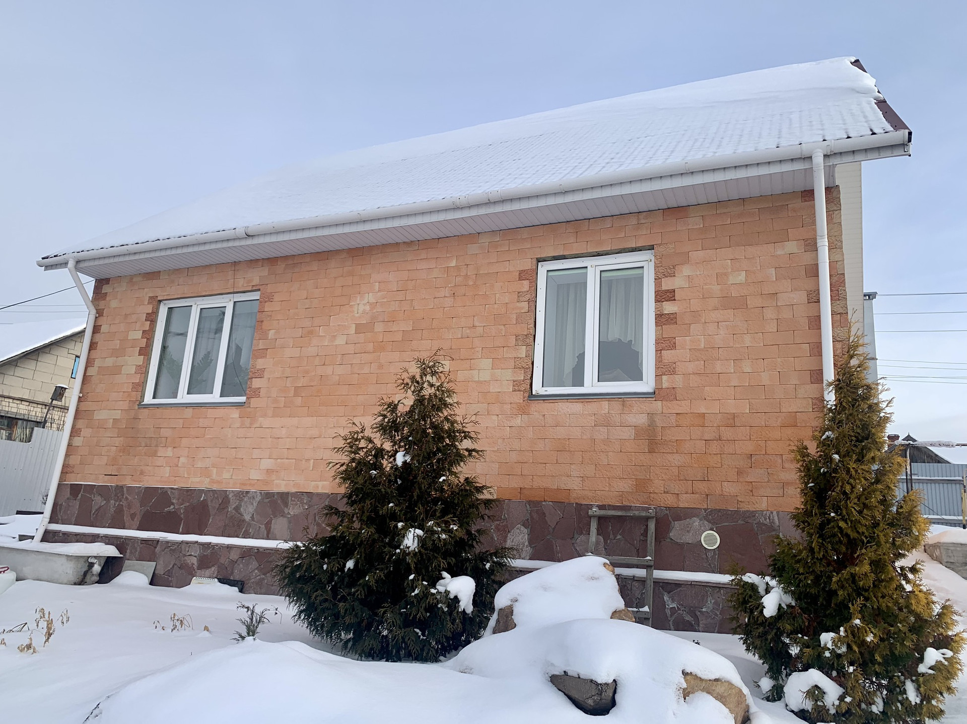 Дом 72,6 кв. м из пеноблока, обложен кирпичом и обшит шамотный камнем.