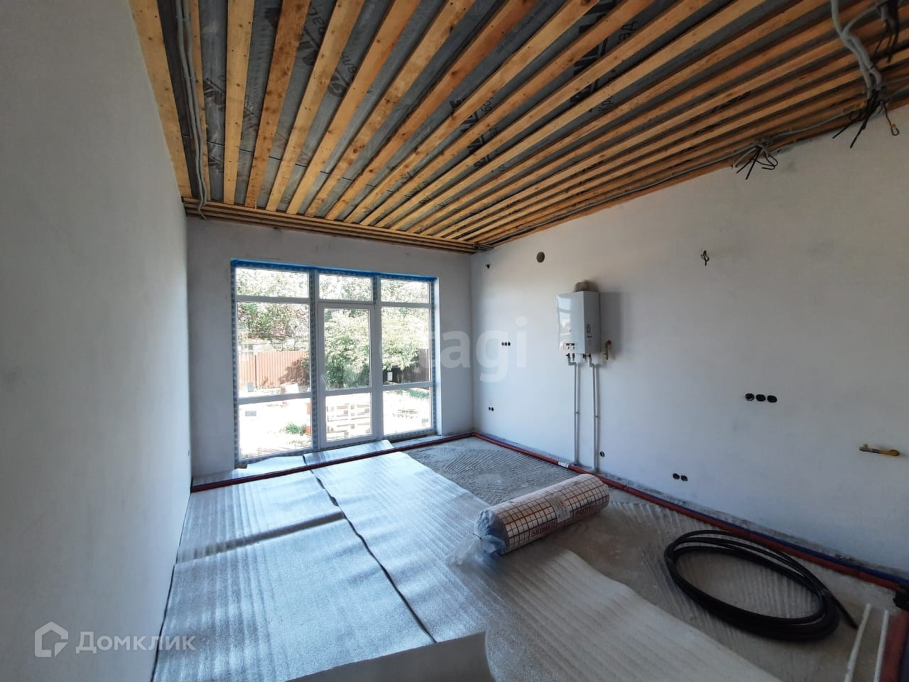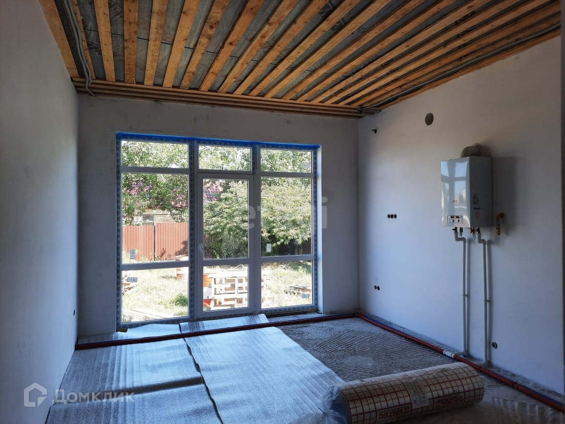 Материал стен - газоблоки, обложенные кирпичом, крыша перекрыта профлистом. Общая площадь - 87 кв.м. Три жилые изолированные комнаты - 16,3 кв.м, 15,2 кв.м, 15,8 кв.м, кухня-гостиная - 20 кв.м, совмещенный санузел и коридор - 13,7 кв.м. Состояние - предчистовая отделка. Установлен двухконтурный газовый котел. В прихожей и на кухне сделана разводка теплого пола. Высота потолков - 2,9 метров.