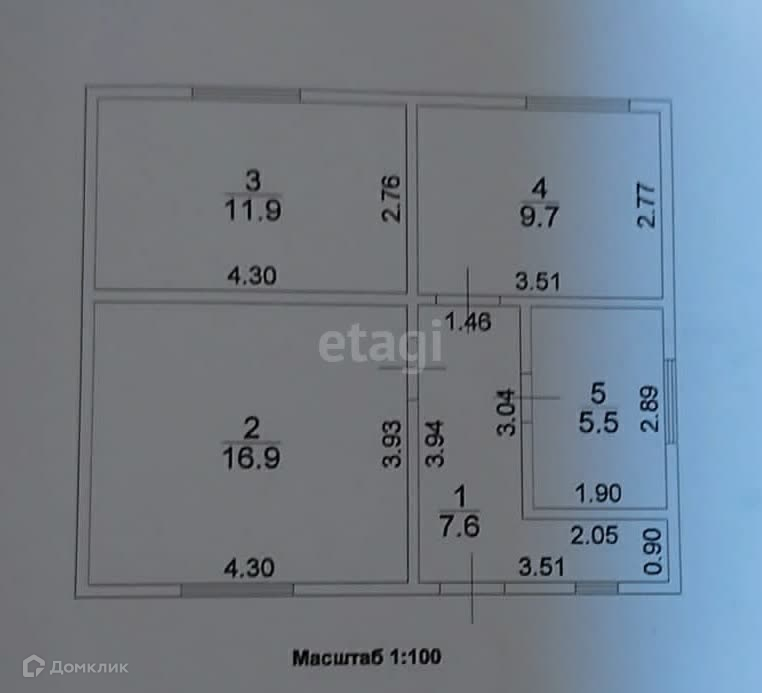 Общая площадь 54.6 м2