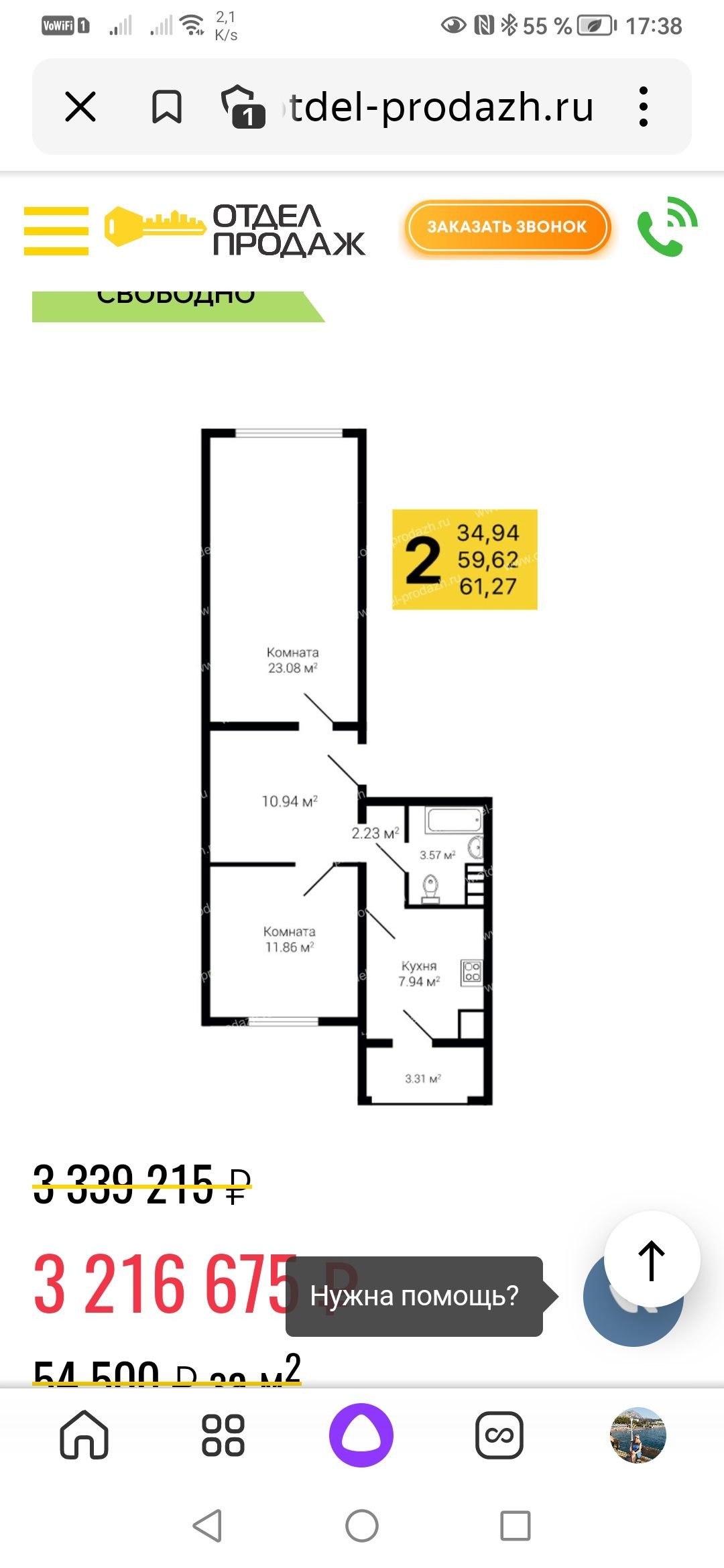 Общая площадь 61 м2