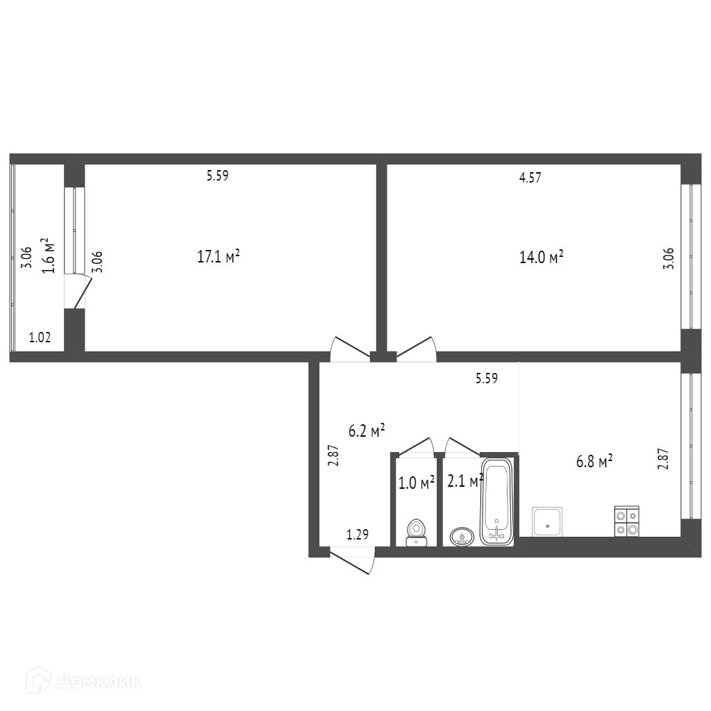 Общая площадь 47.2 м2