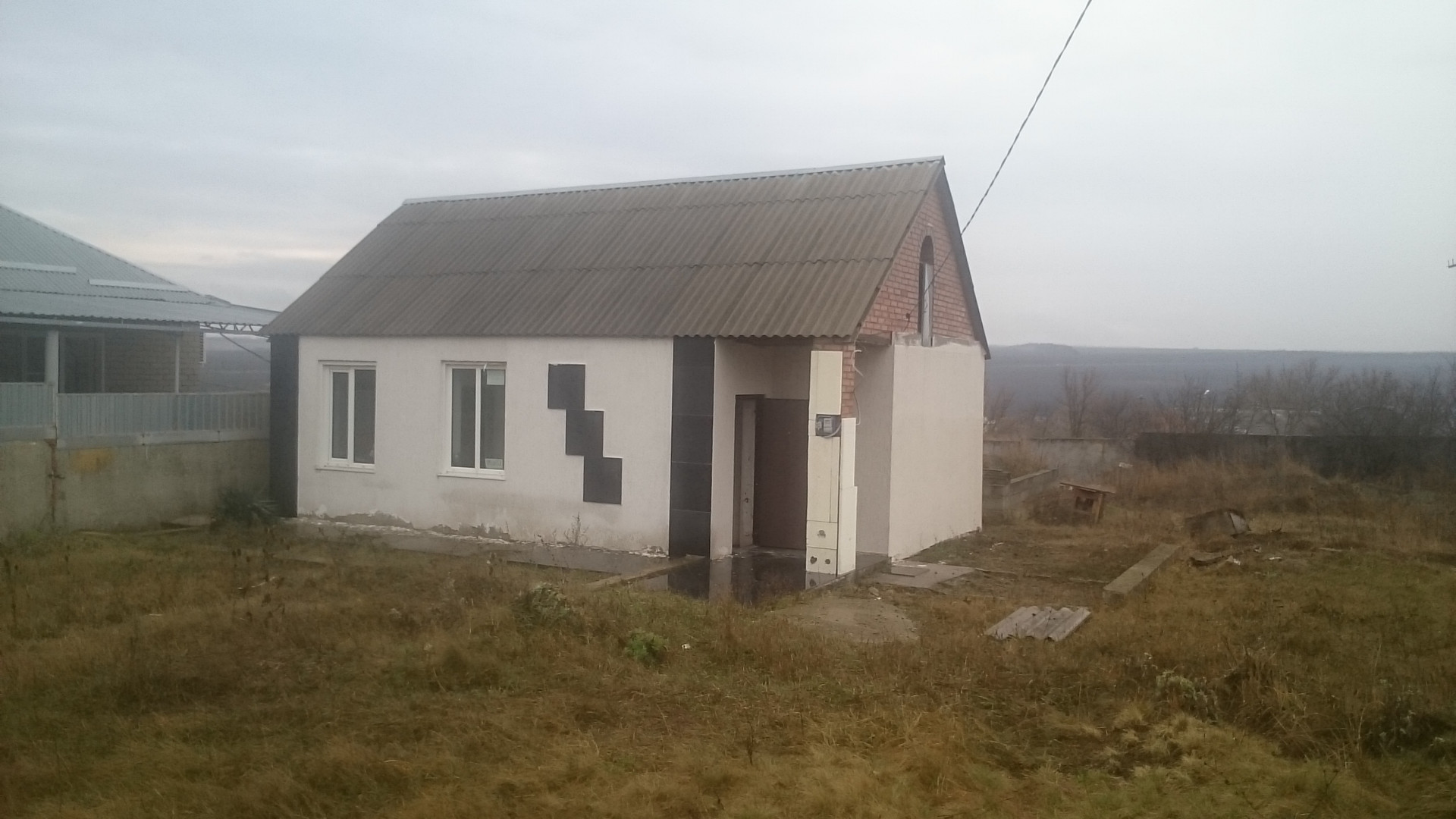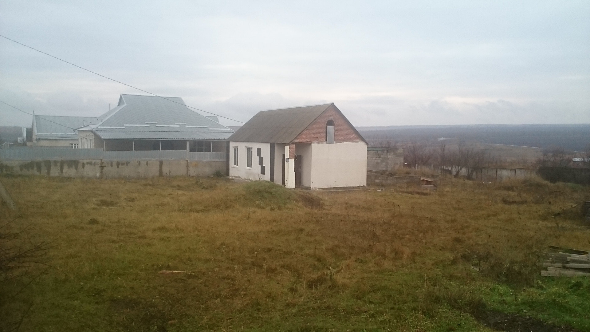 Небольшой дом с отдельно-пристроенной к нему кухней в стиле "Лофт". В домике две комнаты, коридор и санузел: прямоугольная комната размером (5,6*2,4) 13,4 кв.м, вторая имеет форму практически равностороннего квадрата (4,2*4) 16,8 кв.м. Коридор вытянутой форму (4,25*1,3) 5,5 кв.м, ванная комната с отдельным туалетом (3,9*1,5) 5,85 м.кв. Во всем помещении практически вся черновая отделка: цементная стяжка, гипсовая штукатурка, потолки и гипсокартон. Кухня - "мечта" наверняка любой нормальной хозяйки, её размеры (4,6*6) 27,6 кв.м!!! с шикарным окном панорамного вида перед которым залита плита под кухонный " островок ". Перед окном залит фундамент с выложенным блоком на всю длину окна, планируется терраса с миниатюрным прудиком, к кухне по всей длине будет пристраиваться ещё одно помещение не меньше этой кухни. Весь фасад утеплен пенопластом и отделан декоративной штукатуркой "Короед". Сам участок правильной формы, около 8 соток, рядом пустующий участок такого же размера, как и предыдущий, его можно выкупить при желании, тем самым увеличив всю площадь до 16 соток. ( 150000 - это цена за участок). Заложены металлические столбы под будущие ворота и калитку. Оба участка имеют очень красивый вид на поля, лески и автотрассу, пруд и непосредственно само село. Территориально находится в очень неплохом и выгодном месте села Александровского, трасса с выездом на "Мин-воды", с другой стороны "Ставрополь", недалеко пруд и сады, до центра села 15-20 минут ходьбы. Сам участок находится на возвышенности, поэтому подтопов и сезонной задымленности нет. До "Шанхая" 10 минут, до новой 16-ой школы и детского сада ещё меньше. Ниже ещё один пруд с частными магазинчиками, ходят маршруты "5" и"6". Соседей мало, поэтому можно заниматься, чем угодно и наслаждаться полной свободой и релаксом.