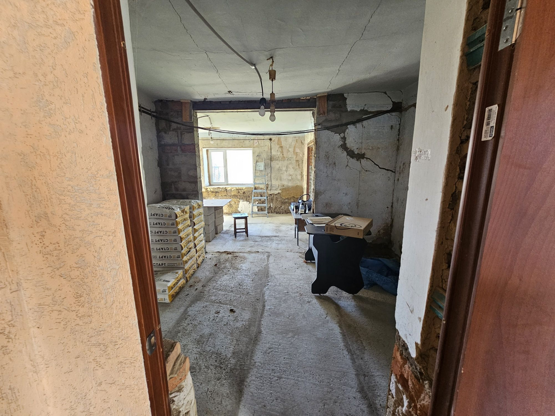 Нужно завершить ремонт. Установить новое отопление (батареи куплены), заштукатурить стены, натянуть потолок.
