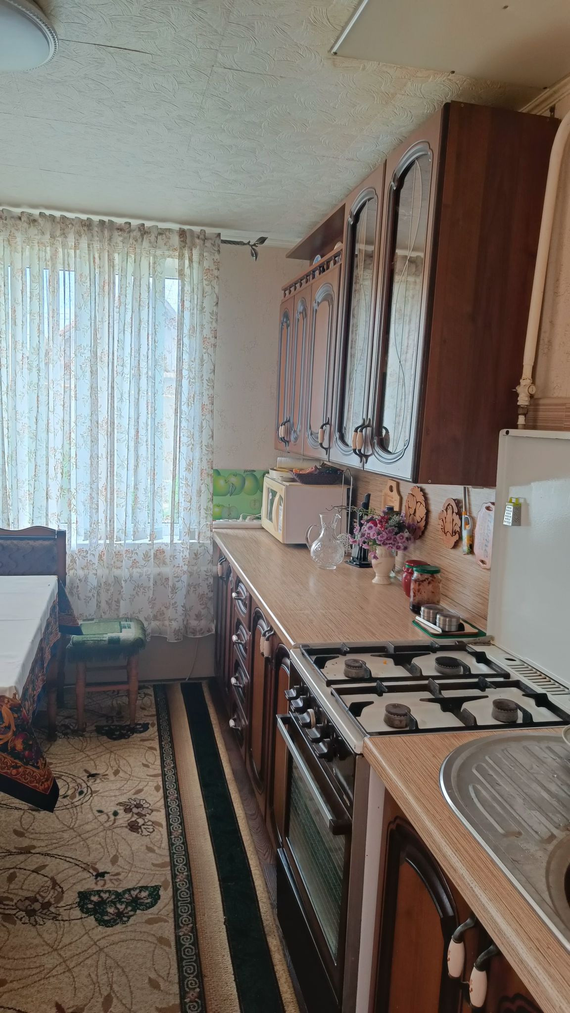 Продается одноэтажный кирпичный дом, расположенный недалеко от центра села(15 мин.пешком до центральной площади), но в удалении от центральных дорог. Тихое уютное, удобное место. В доме 3 изолированные комнаты, кухня, раздельный санузел, кладовая, просторный коридор и прихожая. Над крыльцом навес. Двор большой удобный, уложена плитка.Во дворе гараж, сарай. В сарае подвал.