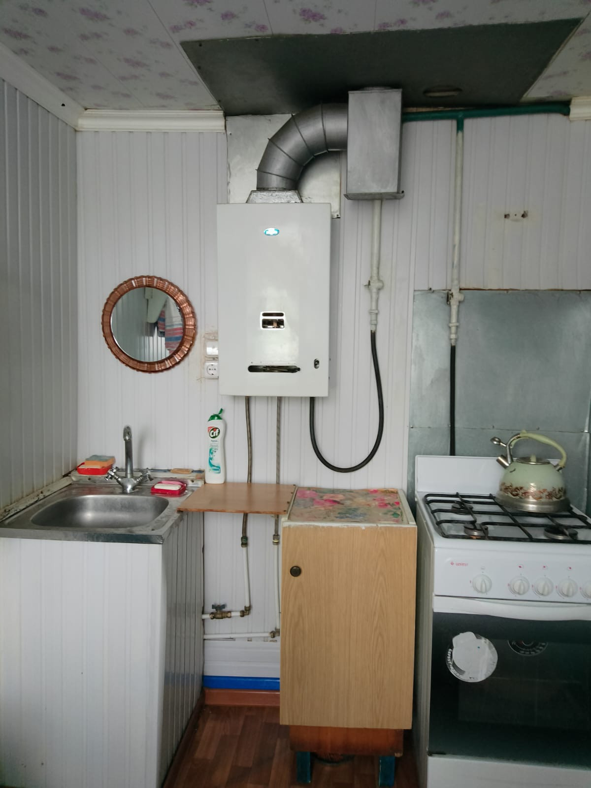 Продам домовладение 63квм. Близкое расположение к центру села (10 минут пешком). Рядом поликлиника, школа, детский сад, магазины, остановка общественного транспорта. В доме-прихожая, 3 комнаты, кухня, совместный санузел. Высота потолков 2.7м. Наличие счетчиков и сплитсистемы. Отопительный котел вынесен в пристроенную к дому котельную-мастерскую площадью 15кмв. Крыша металлопрофиль, окна стеклопакеты. Двор бетонирован, навес для автомобиля. Отдельно стоящая времянка. Наличие подвала, небольшие хозпостройки. Огород 4 сотки, собственная скважина для полива.